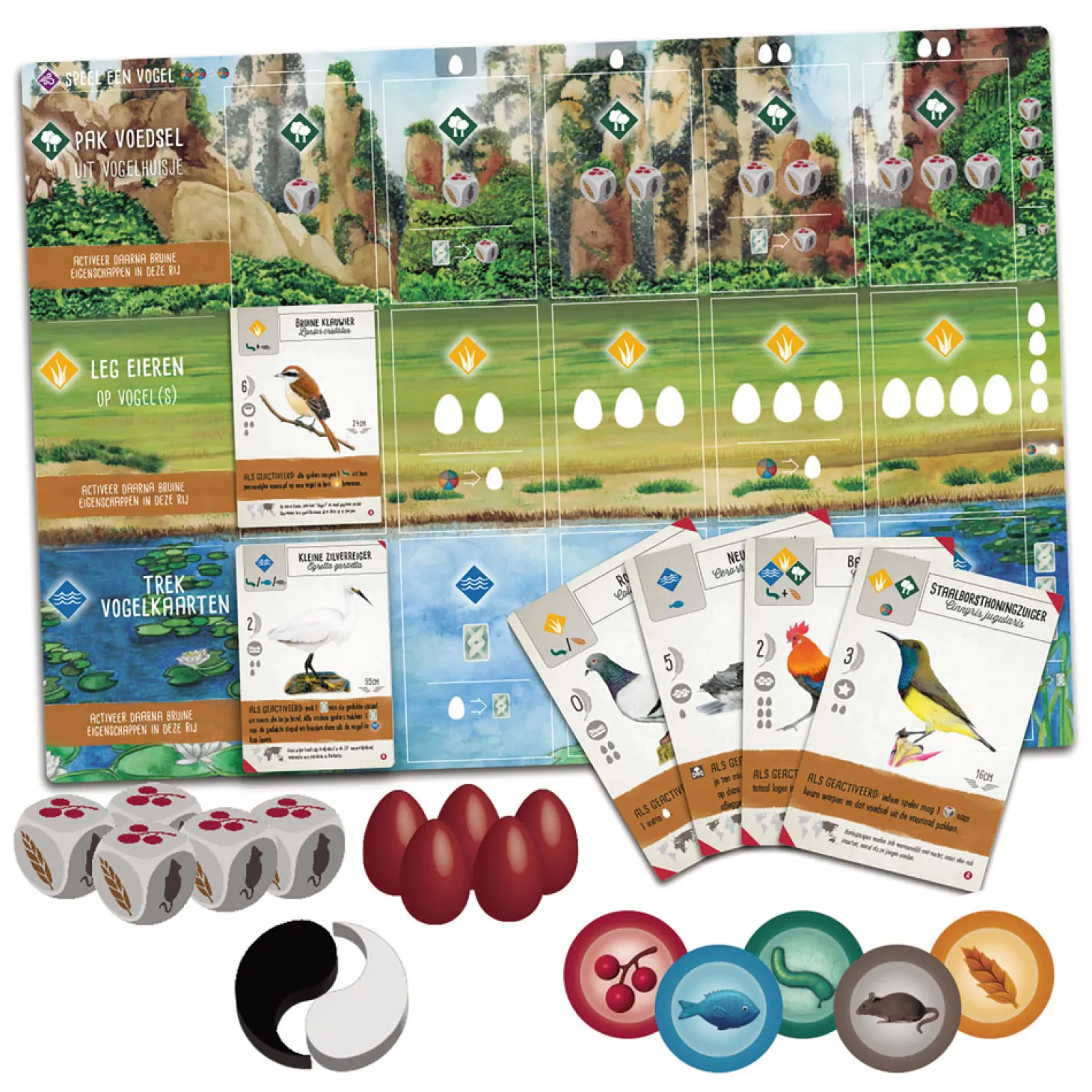Deze versie van Wingspan kan met twee spelers worden gespeeld. Het spel bevat regels voor de nieuwe “duet”-variant. In deze variant scoor je extra punten met behulp van een tableau met vogeleigenschappen. Zodra je een vogel speelt, dek je de bijhorende eigenschap op het tableau af voor bonuspunten. Dit zorgt voor een uitdagend spel voor twee, vol tactische keuzes.