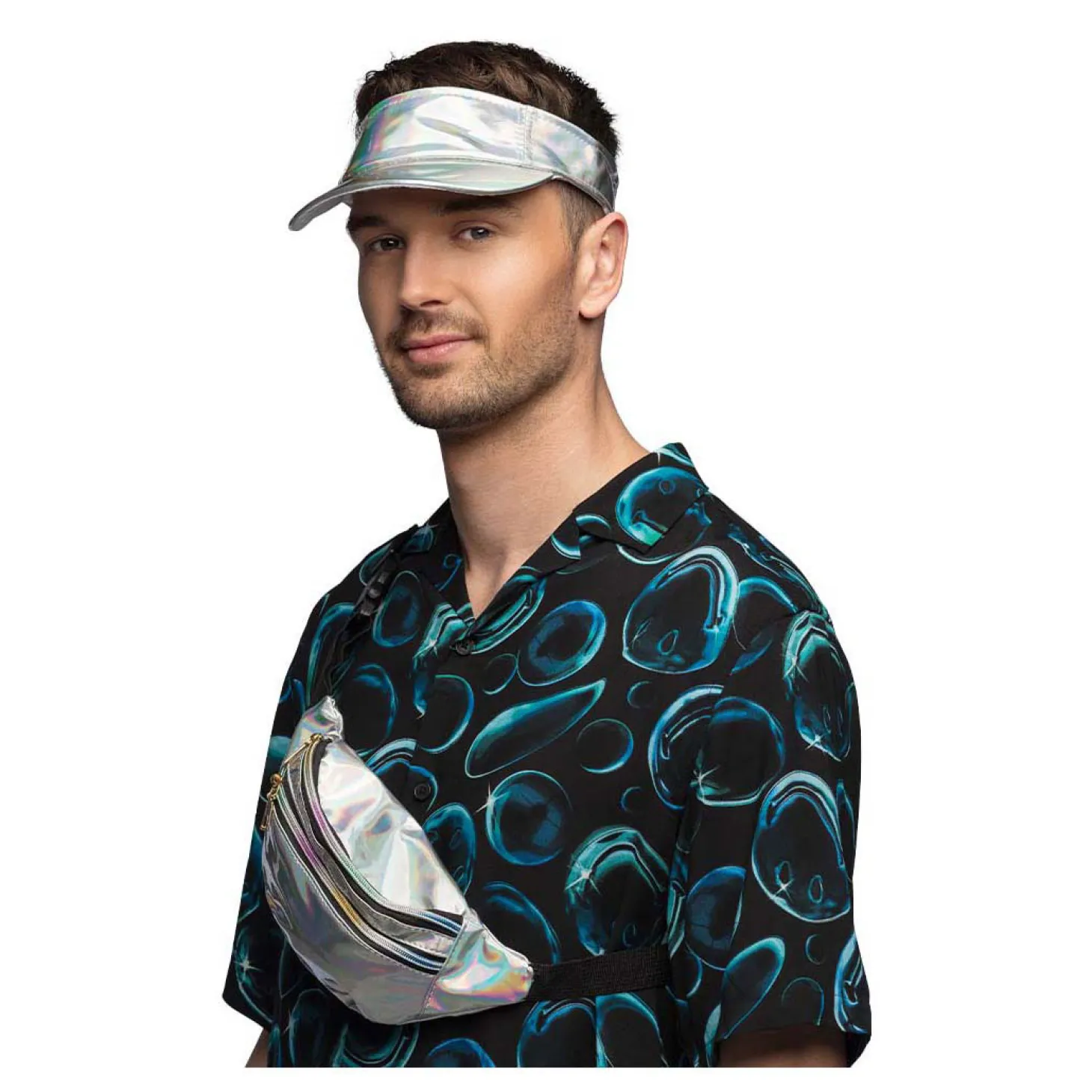 • Zilverkleurige holografische zonneklep en heuptasje