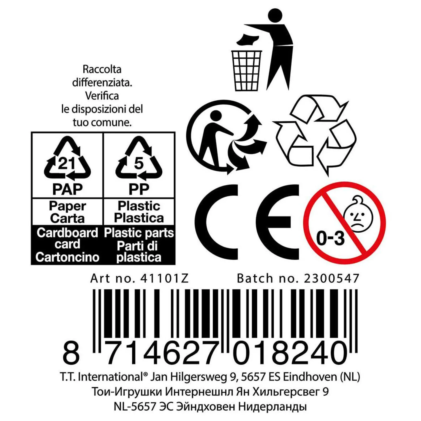 - Waarschuwing: Niet geschikt voor kinderen onder de 3 jaar ivm kleine onderdelen.