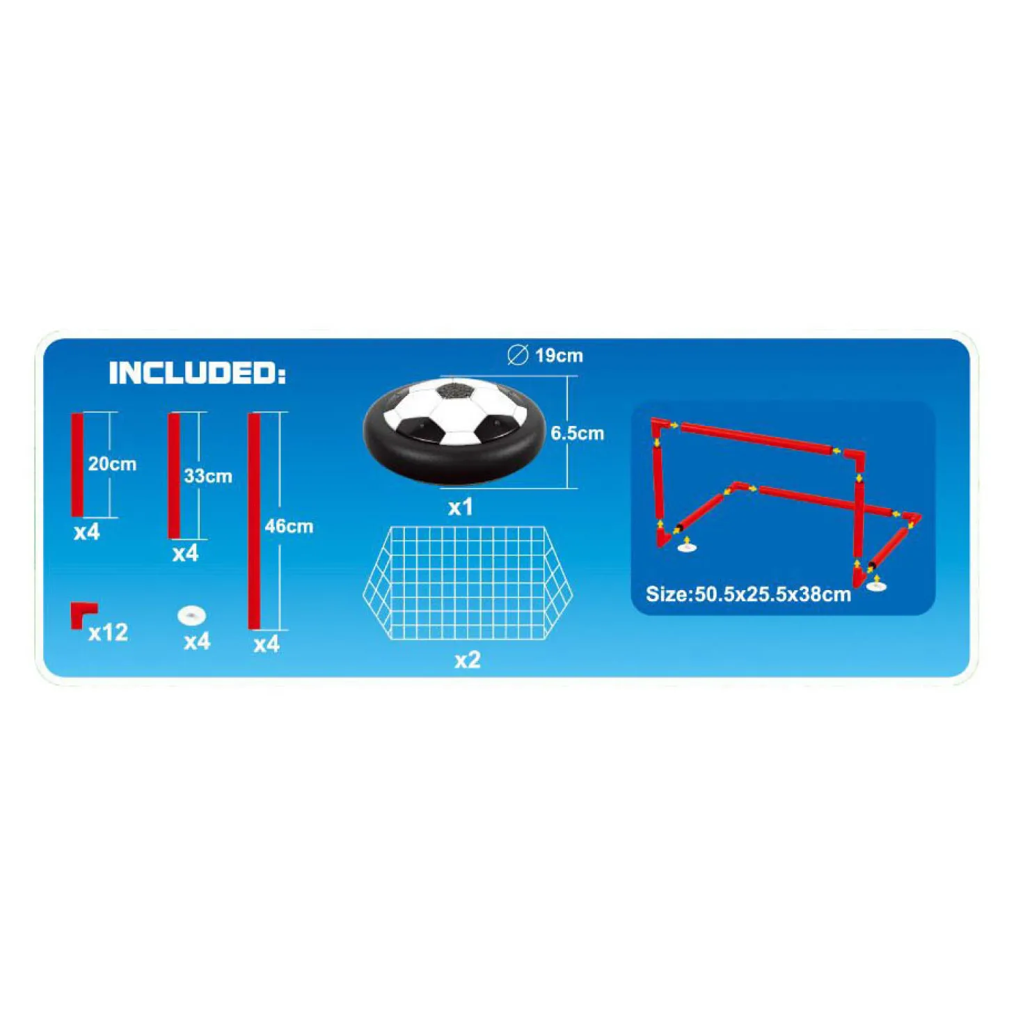 Afmeting goal: 50,5 bij 25,5 bij 38 centimeter.