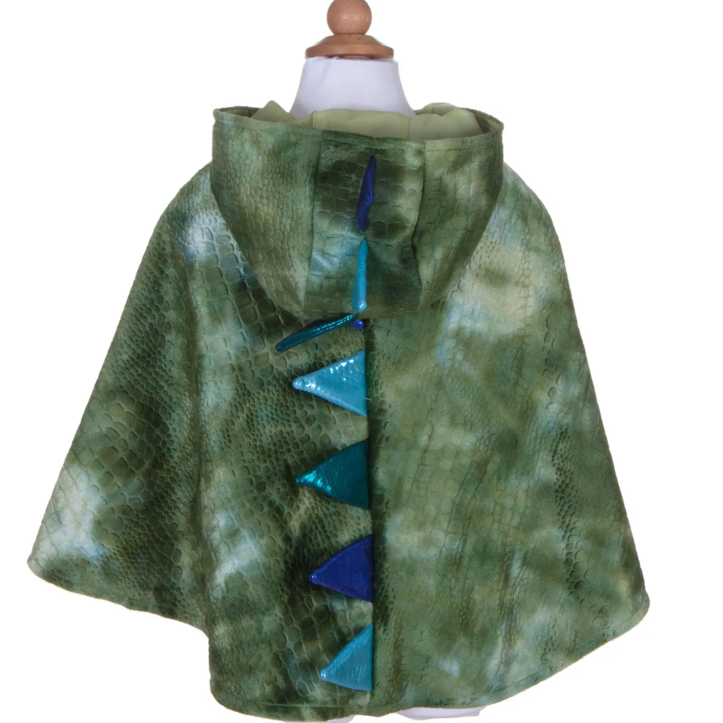 Deze drakencape is zowel stoer als eigenlijk best wel schattig, door zijn kleine formaat! Deze cape is geschikt voor kindjes van 1 tot 2 jaar, dus voor de echte kleintjes! De groene cape met reptielenprint en de blauwe stekels op de rug van de capuchon tot de onderkant maken de look van jouw kleine draak helemaal af. De cape sluit met klittenband.