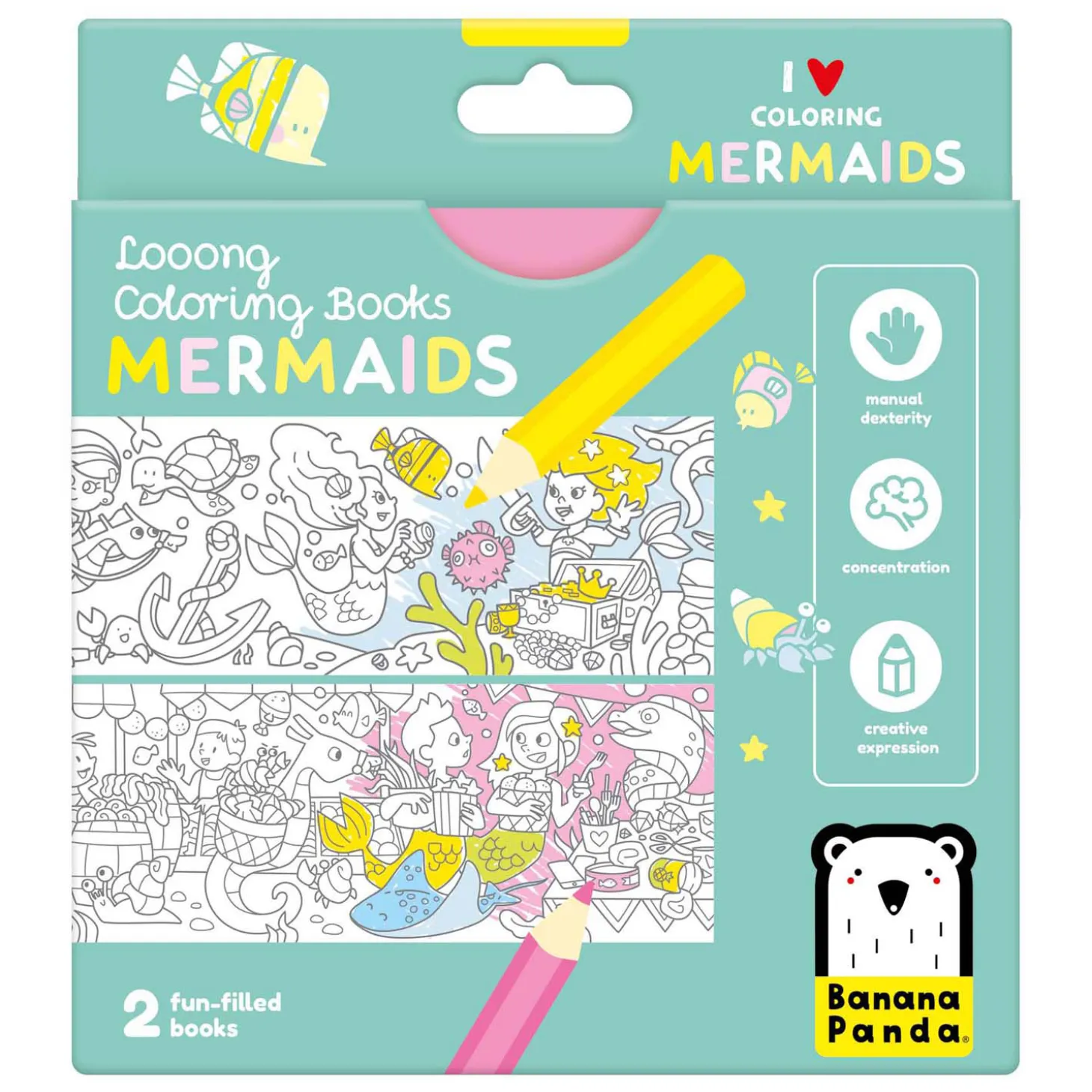 Deze creatieve set bevat 2 lange (95 cm!) accordeonboeken met 2 panoramafoto’s om in te kleuren, samen met talloze creatieve en leerzame oefeningen.