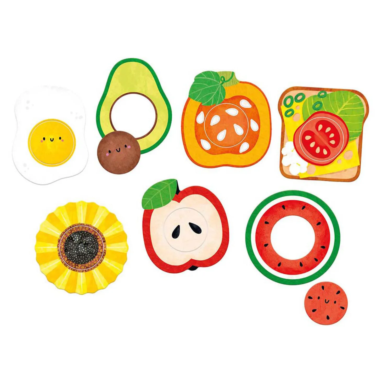 Op deze leeftijd nemen kinderen nieuwe informatie op en beginnen ze hun wereld te begrijpen. Ze spelen graag samen en imiteren volwassenen, dus puzzels vormen een leuke, praktische manier om een band op te bouwen! Deze puzzels stimuleren de fijne motoriek, observatievermogen en verbeeldingskracht, terwijl ze vertrouwd voedsel introduceren, nieuwsgierigheid wekken en gezonde gewoonten aanmoedigen.