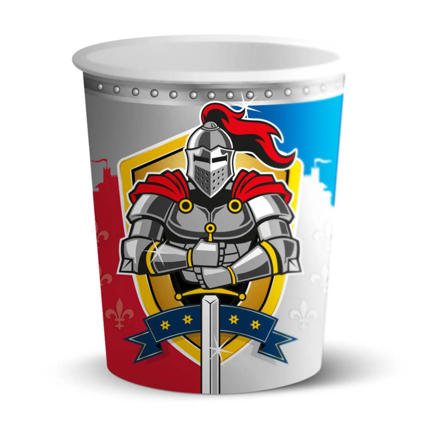 Overleggen aan de ronde tafel kost veel energie, al dat gepraat zorgt dat je dorst krijgt! In deze bekers kan 250ml van jouw favoriete dorstlesser. Zo drinken jij en jouw ridders in stijl. Klaar? Dan gooi je ze zo weg, echte ridders doen geen afwas!