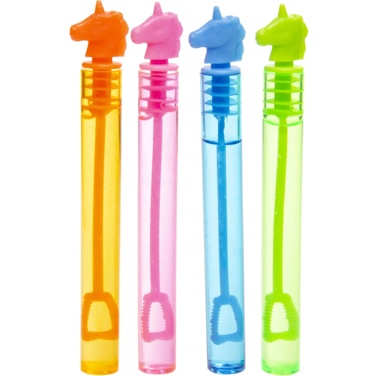 Het doorzichtige kokertje is voorzien van een vrolijk fel kleurtje. Bovenaan de bellenblaas zit het hoofd van een unicorn! De Bellenblaas Eenhoorn wordt geleverd in een doos met 48 stuks. Ideaal om te gebruiken als traktatie! Let op: De bellenblaas kan vlekken veroorzaken op kledingstukken.Prijs per stuk, verschillende uitvoeringen/kleuren worden door elkaar geleverd.