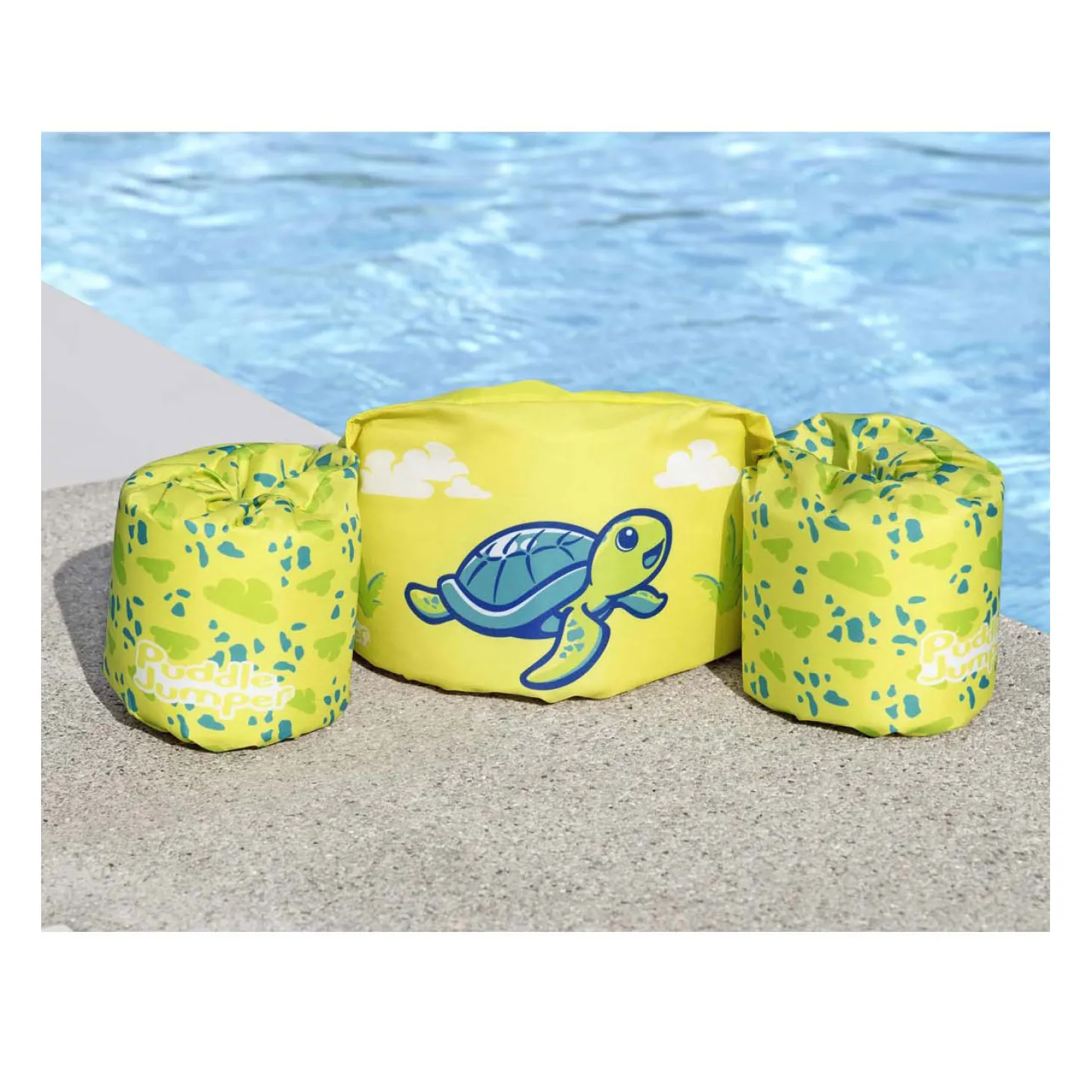 Beleef een zomer vol spetterende glimlachjes met het Puddle Jumper Kinderzwemvest! Help uw kind, 15-30 kg (33-66 lbs), om zelfvertrouwen in het water te ontwikkelen in dit helder zwemvest met een leuke, fantasierijke opdruk van schildpadden.Beoordeeld & Getest:Het Puddle Jumper Kinderzwemvest is gemaakt van kindervriendelijk, glad en sterk polyester materiaal en heeft ingebouwde schuimen kussentjes die getest zijn voor drijfkracht en duurzaamheid.Veilige Pasvorm:Het zwemvest heeft gespen aan de rug waar ze niet bij kunnen, en een verstelbare riem om het goed te laten aansluiten zodat kinderen veilig blijven terwijl ze de hele dag lang spetteren. Of dit nu hun eerste keer in het water is of ze peddel-professionals zijn, het Puddle Jumper kinderzwemvest zal hun de hele zomer lang comfortabel houden.