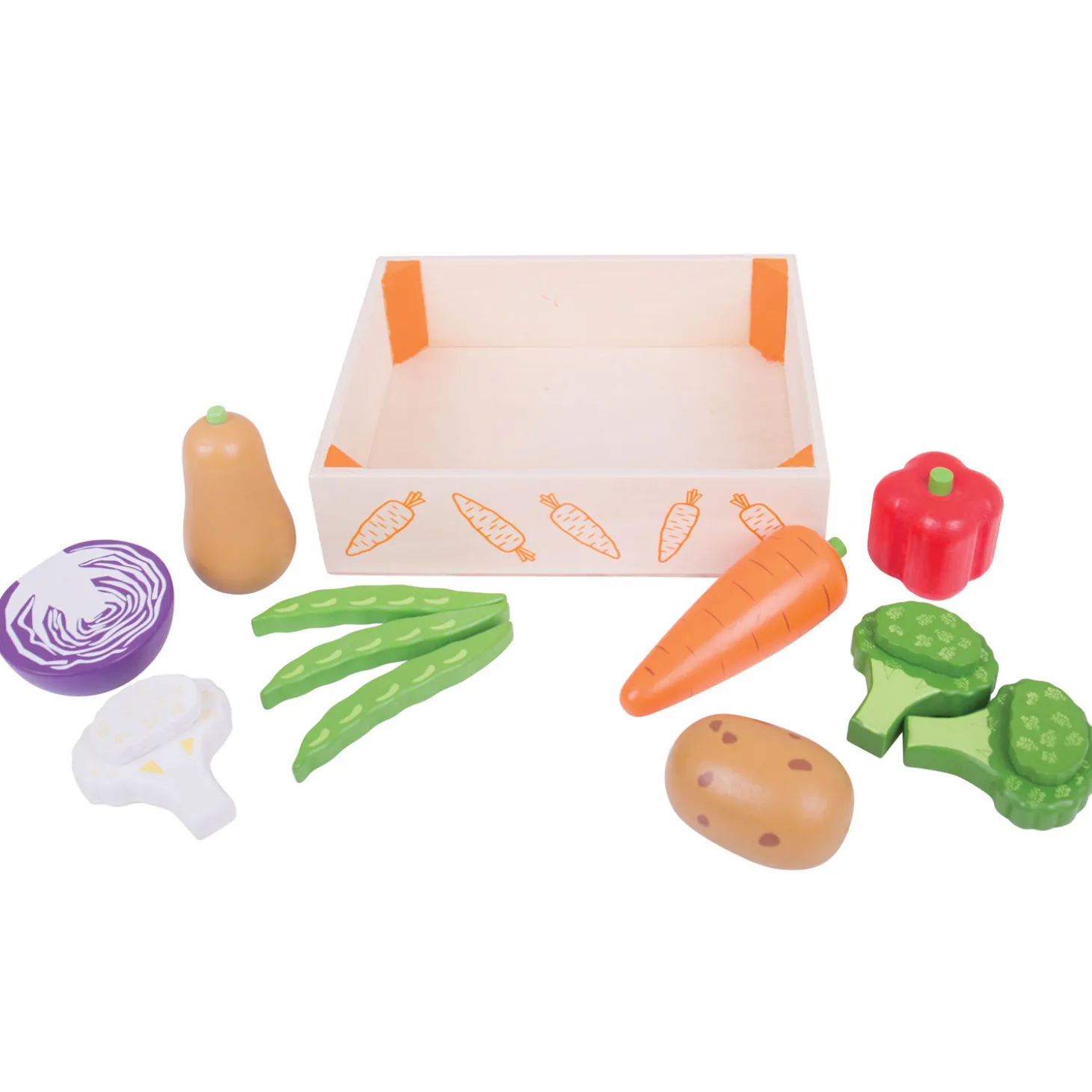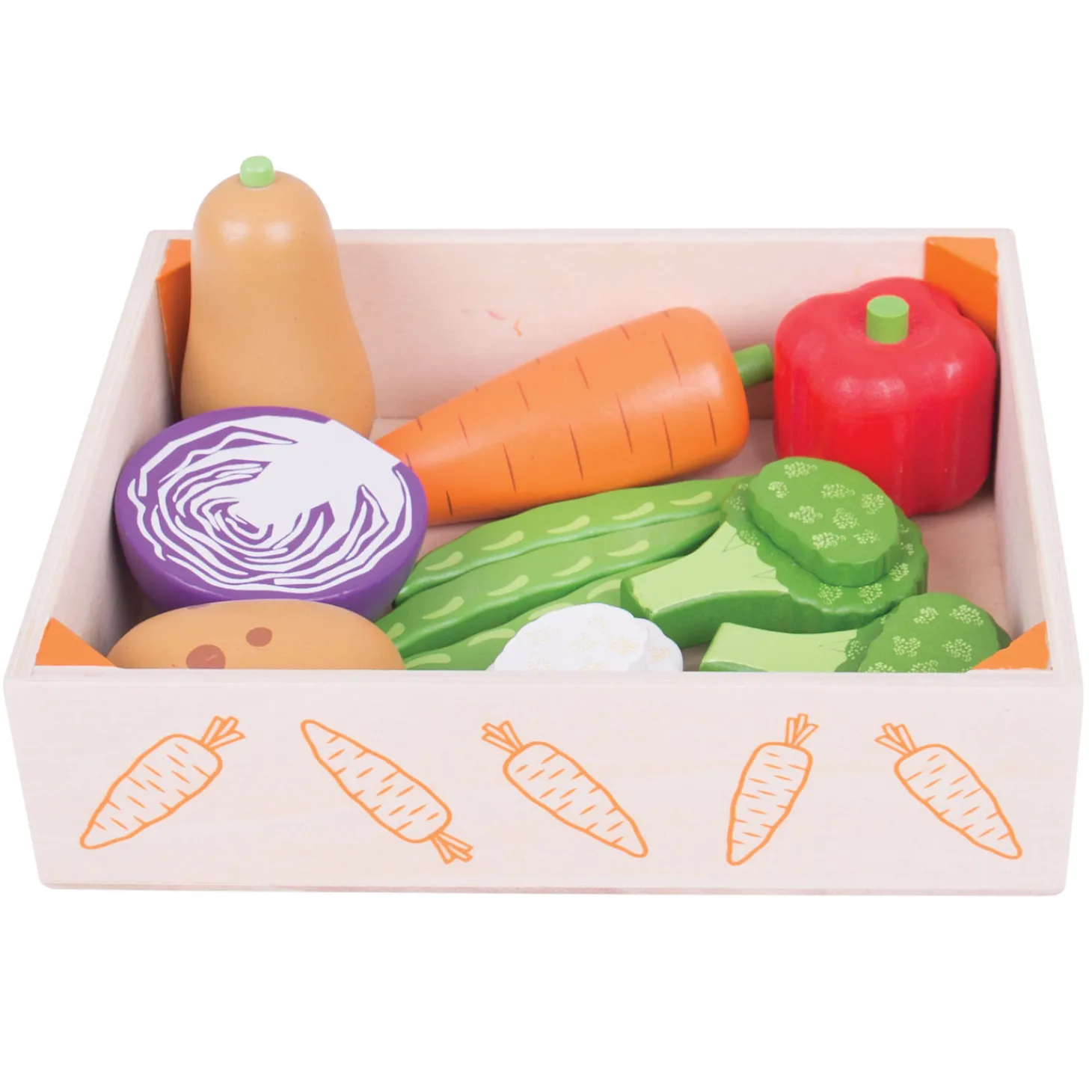 Bigjigs Houten Kistje met Groenten, 12 dlg.