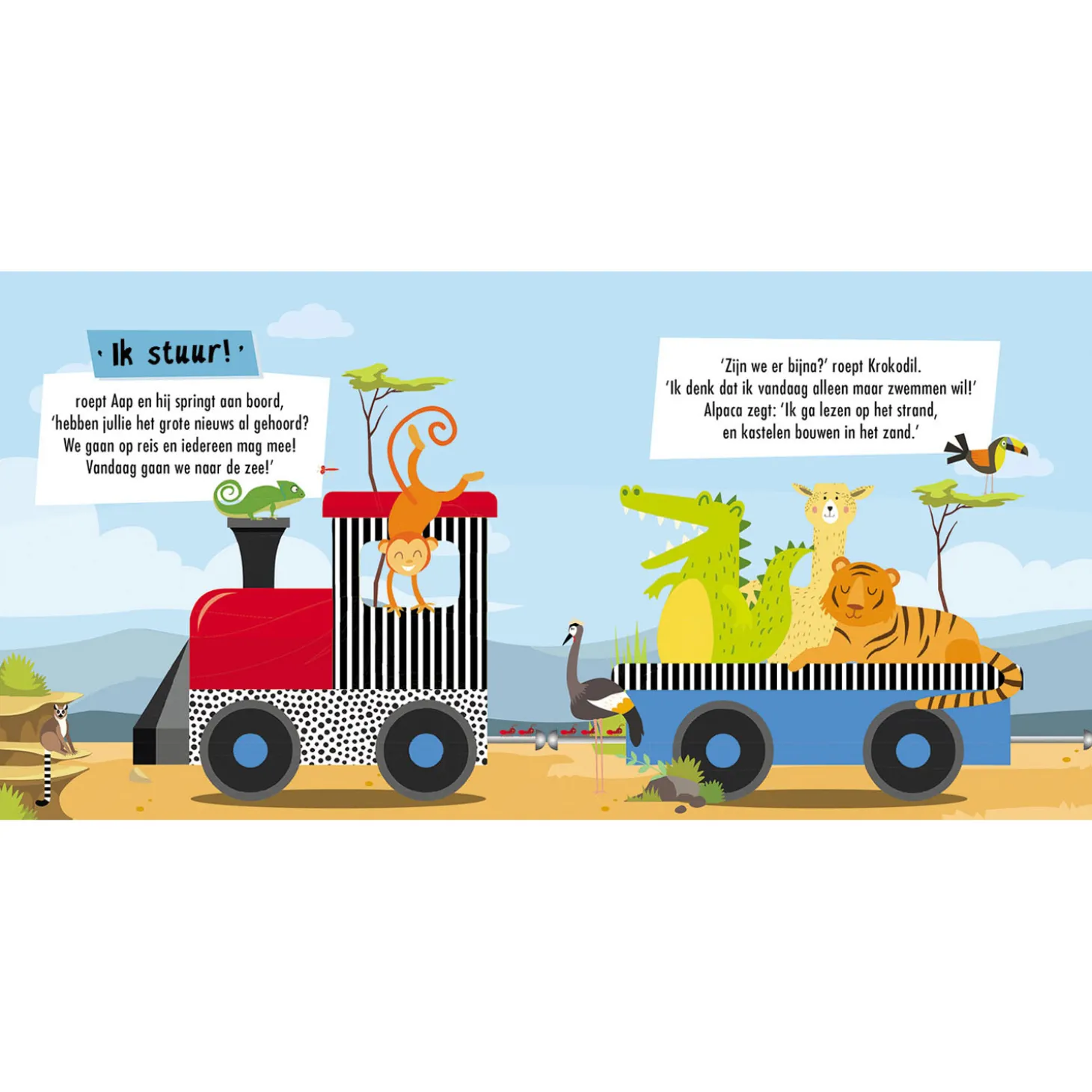 Lukt het om alle dieren te vinden? Dit leuke doosje bevat tien puzzelstukjes en een tien-pagina tellend boekje met rijmpjes over de wilde dieren. Zowel doosje, boekje als puzzelstukjes zijn van stevig karton gemaakt en zijn voorzien van de mooiste kleurrijke illustraties! Het boek en de puzzelstukken zitten in een mooie stevige bewaardoos die gemakkelijk te dragen is door het touwtje. Maak de trein nog langer door ook andere treinpuzzels aan te laten sluiten!