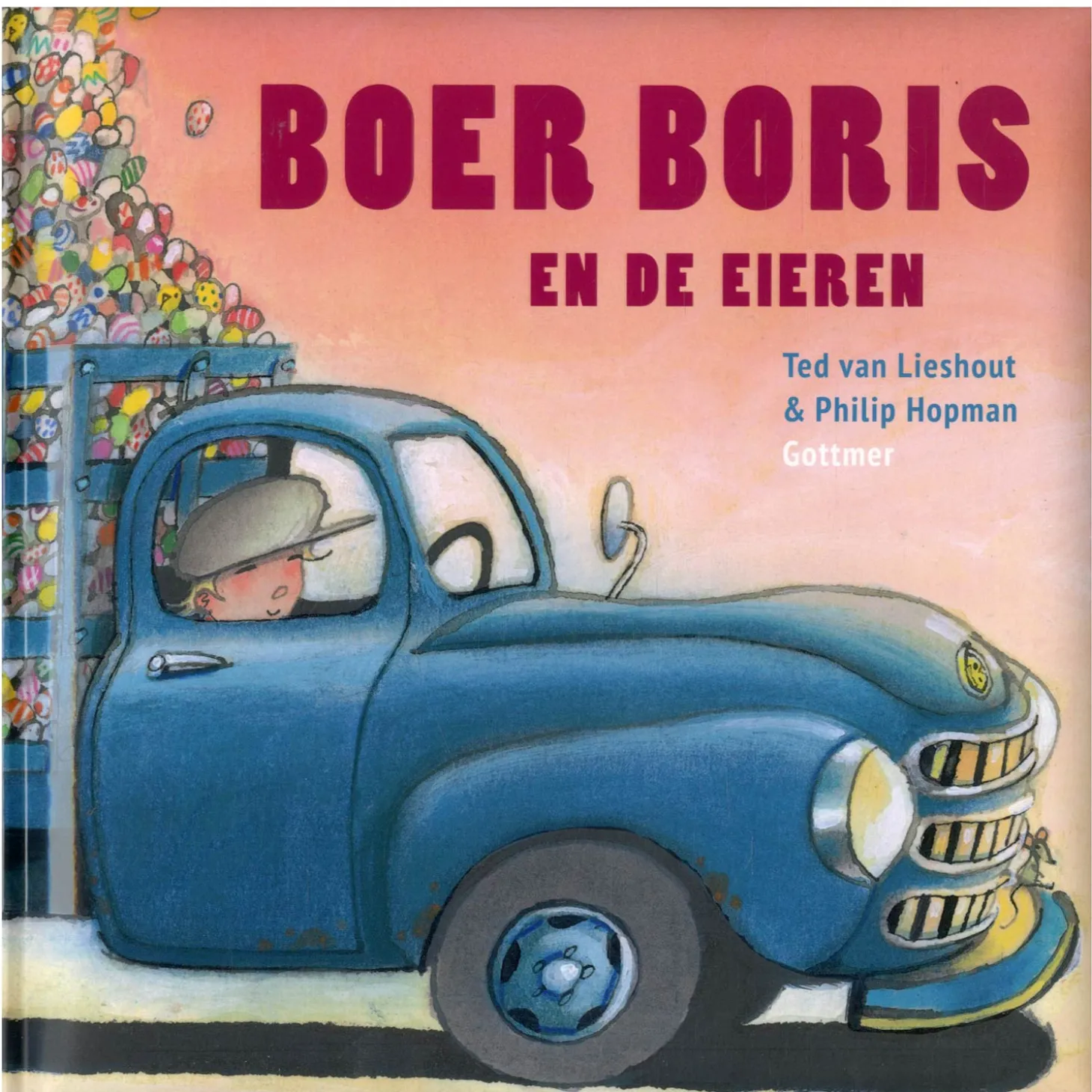 ‘Boer Boris en de eieren’ is een perfect prentenboek voor Pasen. De kippen hebben extra hun best gedaan om vrolijke, gekleurde eieren te leggen. Boris laadt ze op de trekker om ze te verstoppen door het héle land en de kippen gaan gezellig mee. Maar na een bijna-botsing met de paashaas zijn alle eitjes stuk. Van schrik leggen de kippen opnieuw een ei, maar niet zo mooi gekleurd helaas. Er moet gauw iets gebeuren – hoe komen ze aan kleuren?