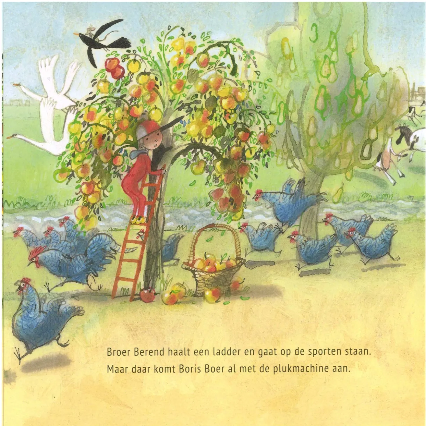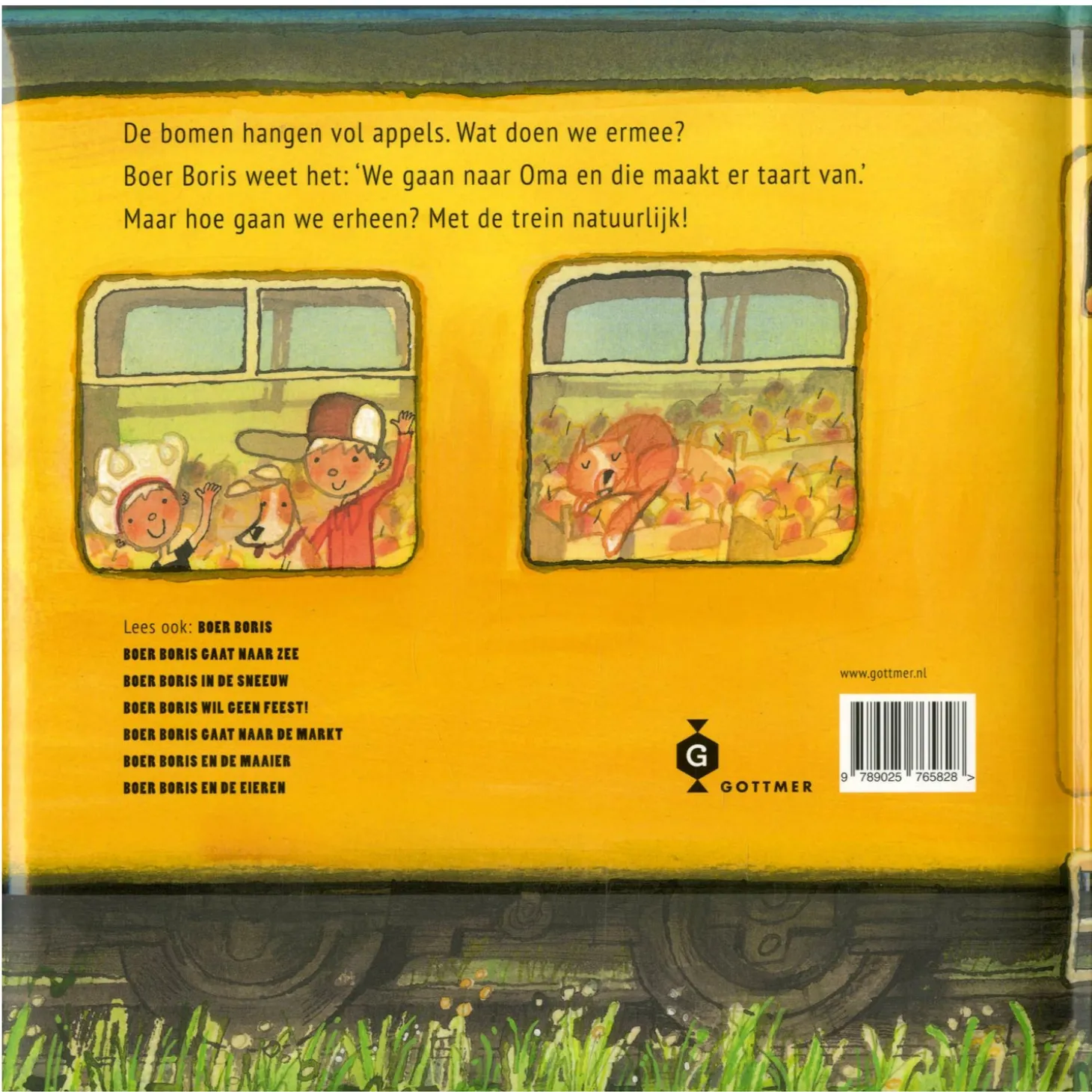 Boer Boris heeft met zijn zusje Sam en broertje Berend een hele hoop appels, peren en pruimen geplukt. Lekker hoor, maar wat moeten ze met zoveel fruit? ‘We gaan ermee,’ zegt Boris Boer, ‘naar Oma in Den Haag Die bakt van appels taarten en van peren maakt ze sap, en van pruimen maakt ze jam voor op beschuit en in de pap.’ En dus gaan ze op pad, met de trein naar Den Haag. Als ze eenmaal aangekomen