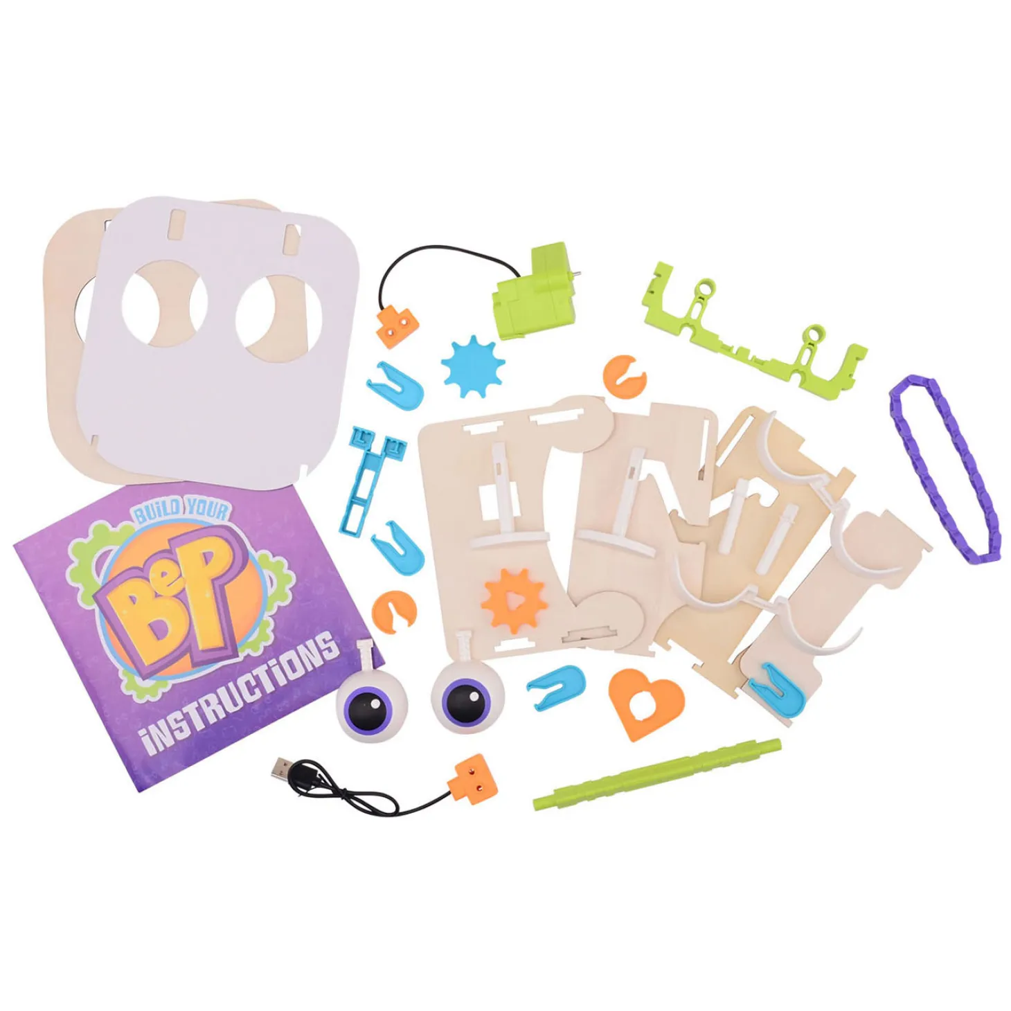 De BEP staat voor Build, Emote, and Play! Ontworpen om techniek niet alleen leerzaam, maar ook leuk te maken! Met de BEP geef je techniek een eigen gezicht – en niet zomaar een gezicht, maar een gezicht dat je zelf vorm kunt geven. Het is als een bouwpakket waarbij je met eenvoudige stappen helemaal zelf je eigen BEP kunt creëren. Maar let op, door verschillende onderdelen anders aan te sluiten, kun je de werking van de BEP beïnvloeden! Dus waar wacht je nog op? Ga aan de slag en ontdek het zelf!
