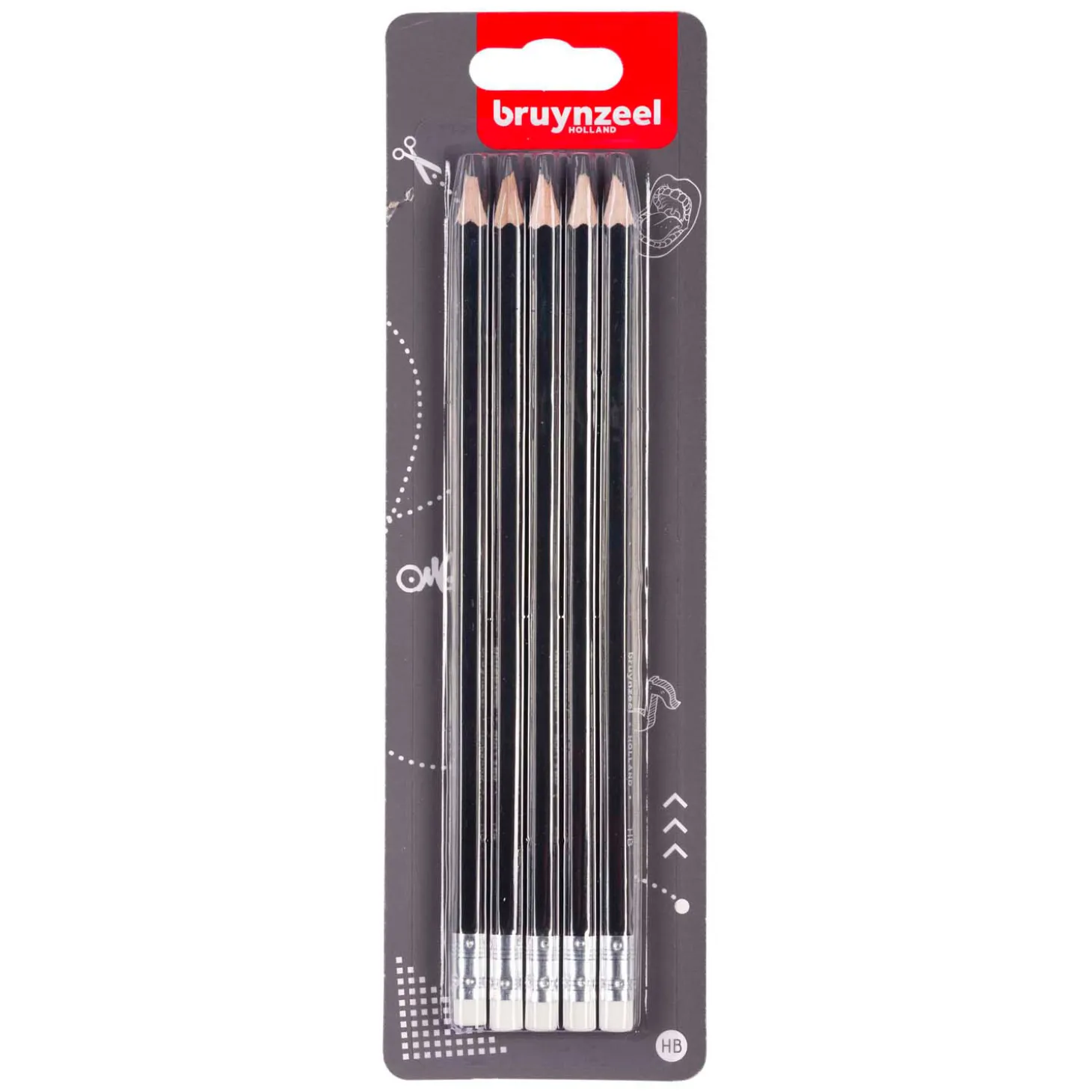 Bruynzeel Grafietpotlodenset, 5 Hb Potloden met Gum