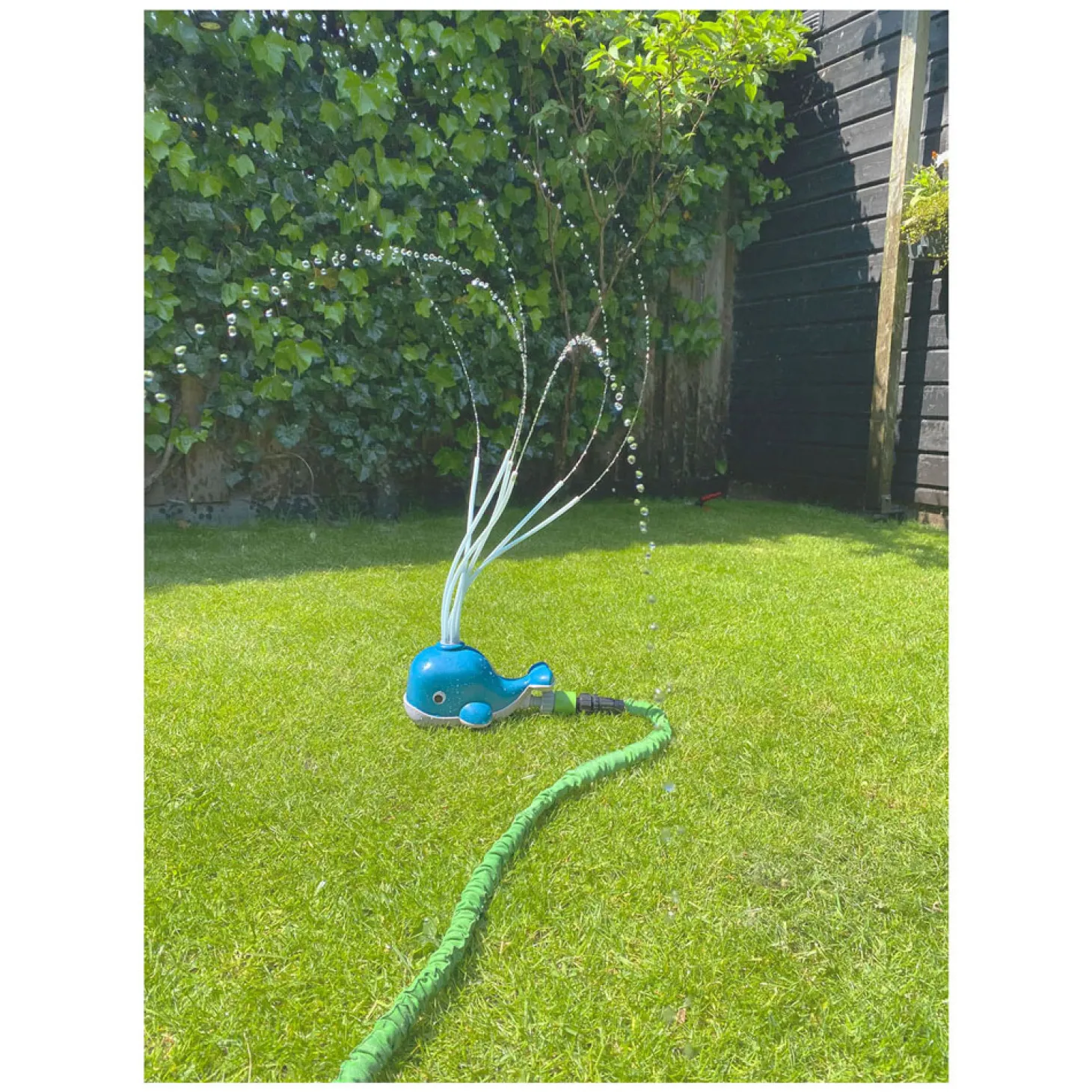 Het lichaam van deze walvis is gemaakt van tarwestro, een bioplastic en kan eenvoudig worden aangesloten op een waterslang voor een snelle en eenvoudige installatie.