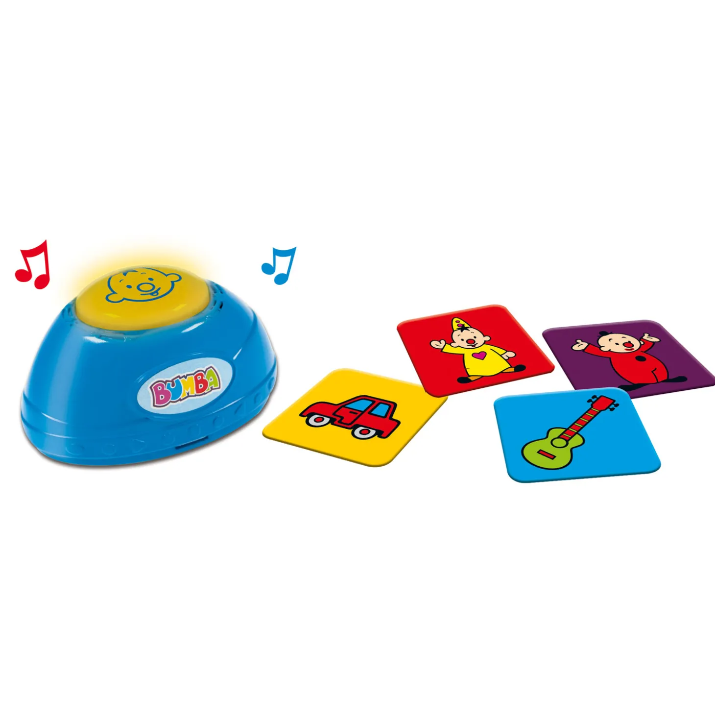 Dit spel laat kinderen op een leuke manier kennismaken met Bumba en zijn vriendjes en de gekke geluidjes die ze maken! Met een simpele druk op de knop licht Bumba op en laat hij iets horen. Bij elk geluid past ook een plaatje. De kunst is om zoveel mogelijk kaartje te verzamelen. Het spel bevat één geluidjesmaker, 48 kaarten en de spelregels. Geschikt voor kinderen vanaf 2 jaar. Werkt op 2 AAA batterijen (inbegrepen).
