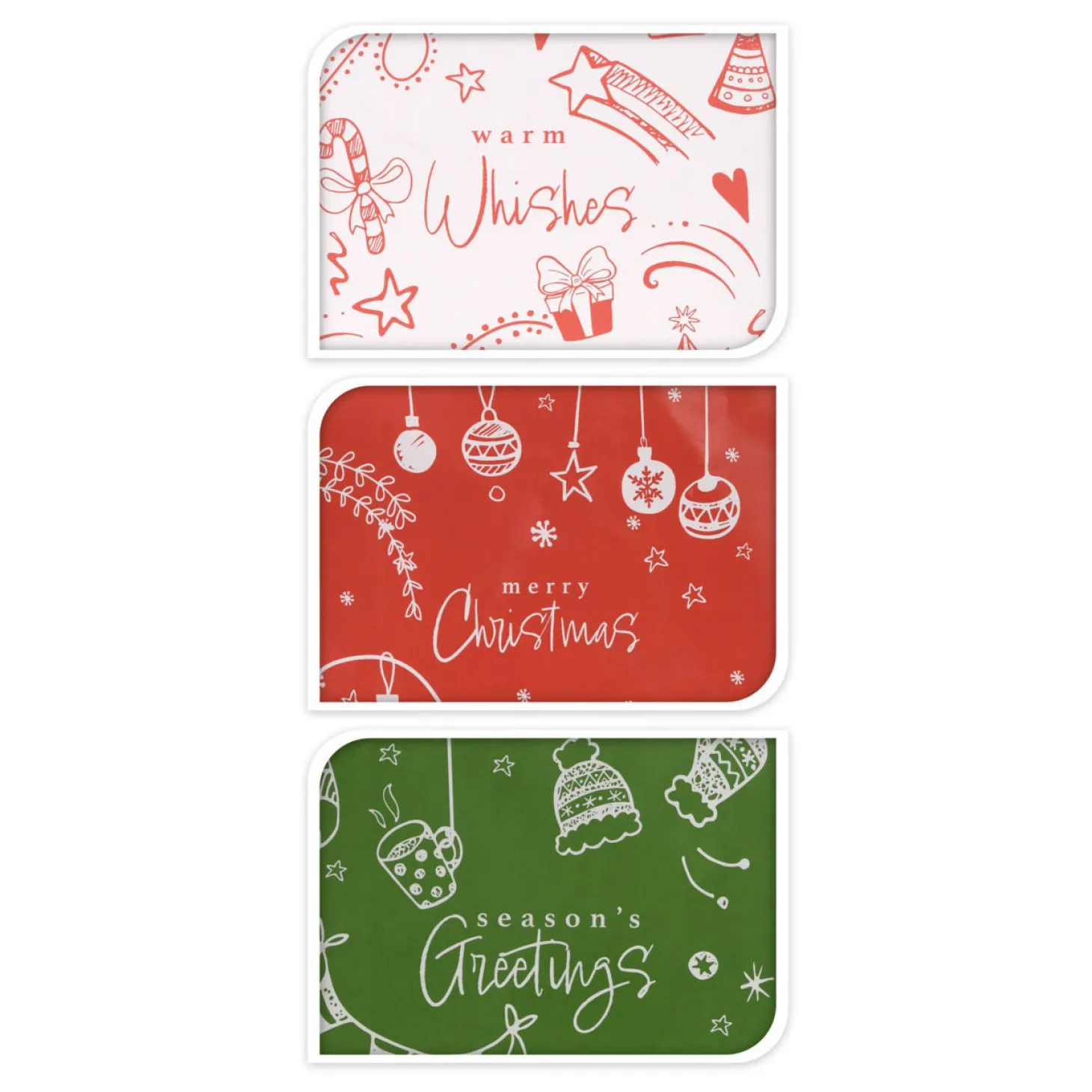 Set van 24 vrolijke geschenktasjes in kerstthema. Verkrijgbaar in groen, rood en wit. De geschenktasjes zijn 16 centimeter groot en hebben een sluitkoord bovenaan.Prijs per stuk, verschillende uitvoeringen/kleuren worden door elkaar geleverd.
