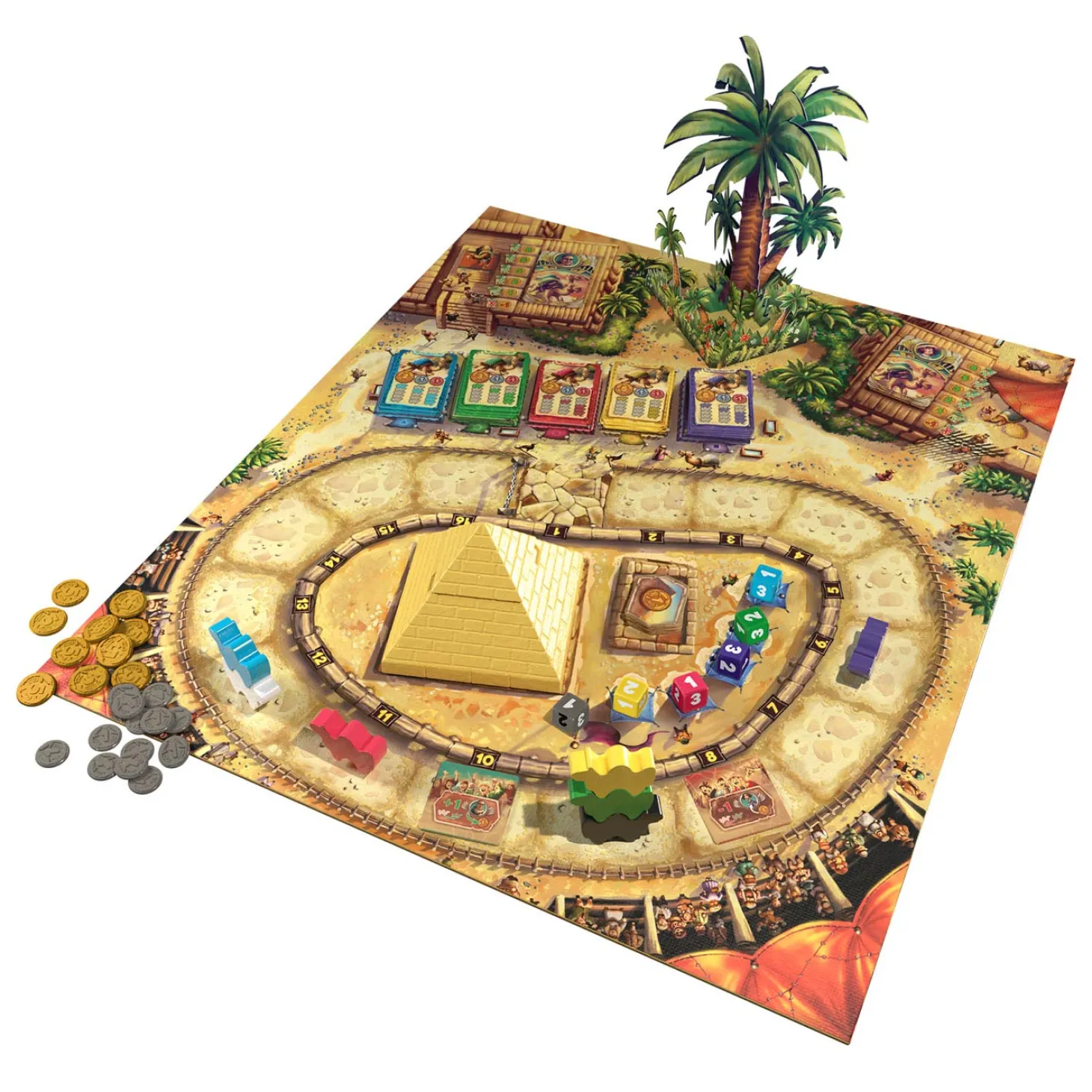 In Camel Up gokken maximaal acht spelers op vijf racekamelen en proberen ze uit te vinden welke de eerste en de tweede plaats zullen innemen in een snelle race rond een piramide. Maar tijdens deze waanzinnige race rennen de kamelen niet netjes, maar landen soms op elkaar en worden zo naar de finish gevoerd. De volgorde van vertrek hangt bovendien af van de dobbelstenen die uit de piramide-dobbelbeker komen.