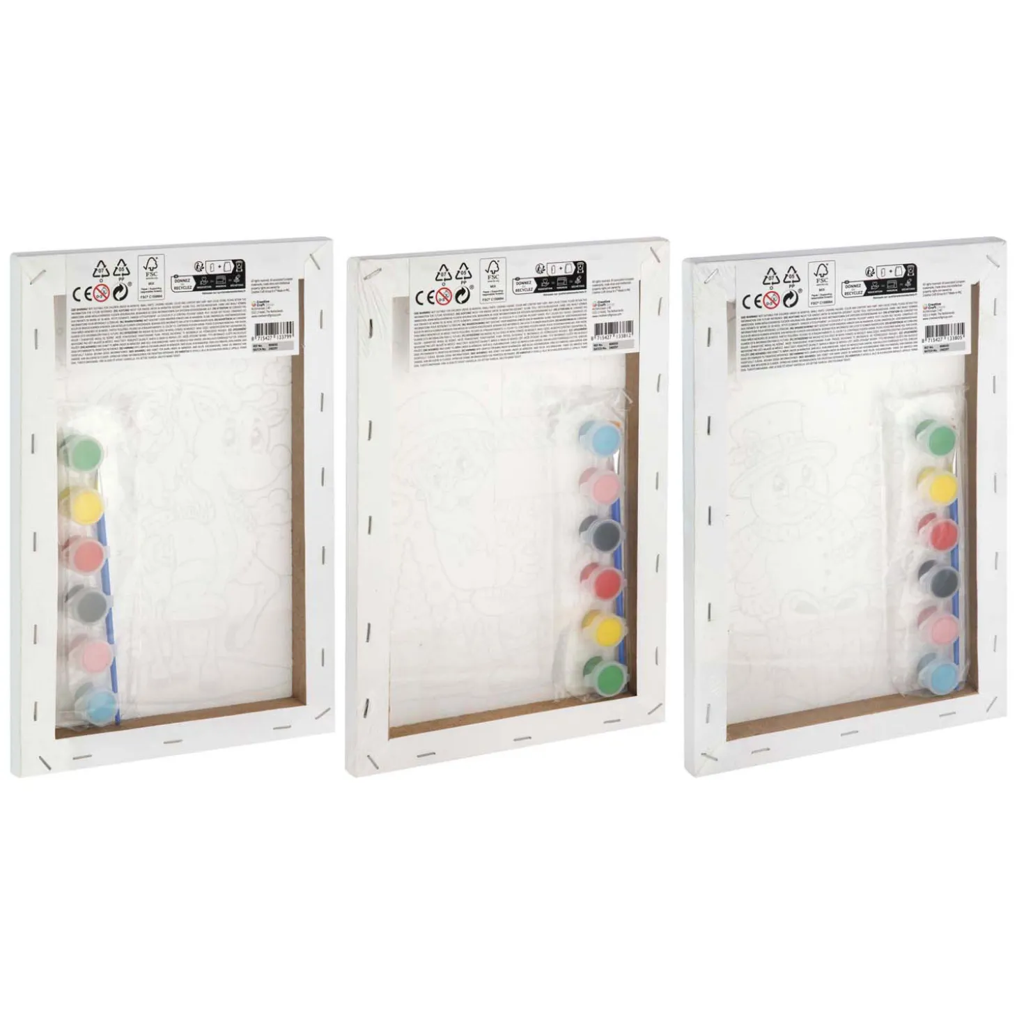 De set is inclusief zes kleuren verf en een penseel. Geschikt voor kinderen vanaf 3 jaar.Prijs per stuk, verschillende uitvoeringen/kleuren worden door elkaar geleverd.