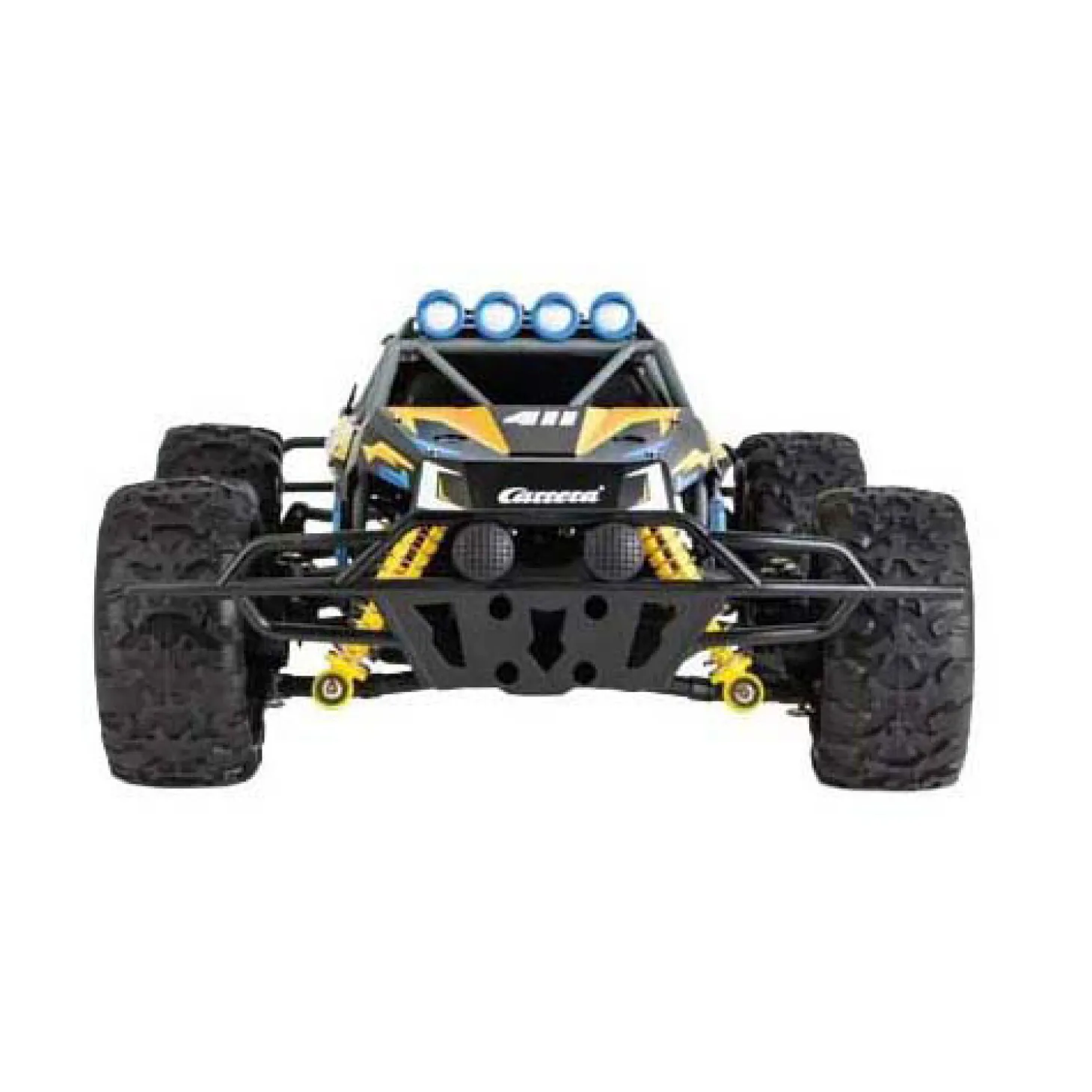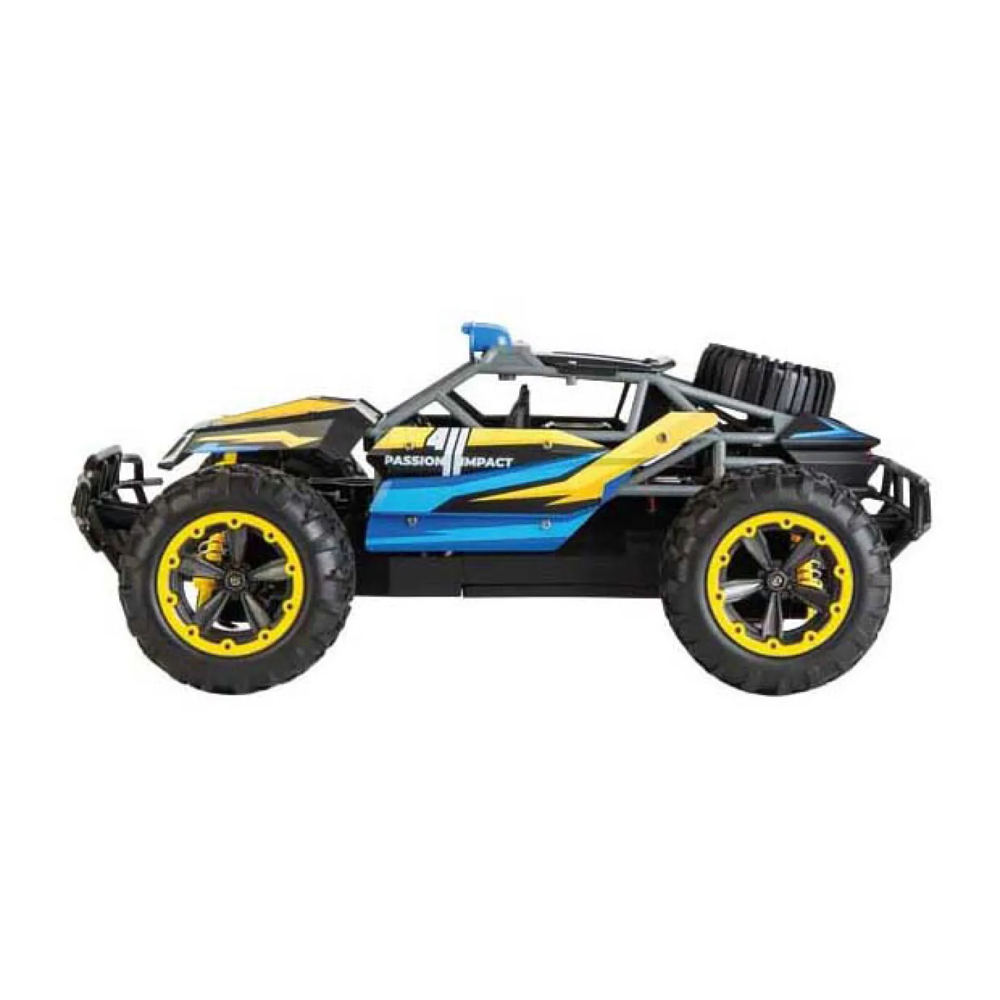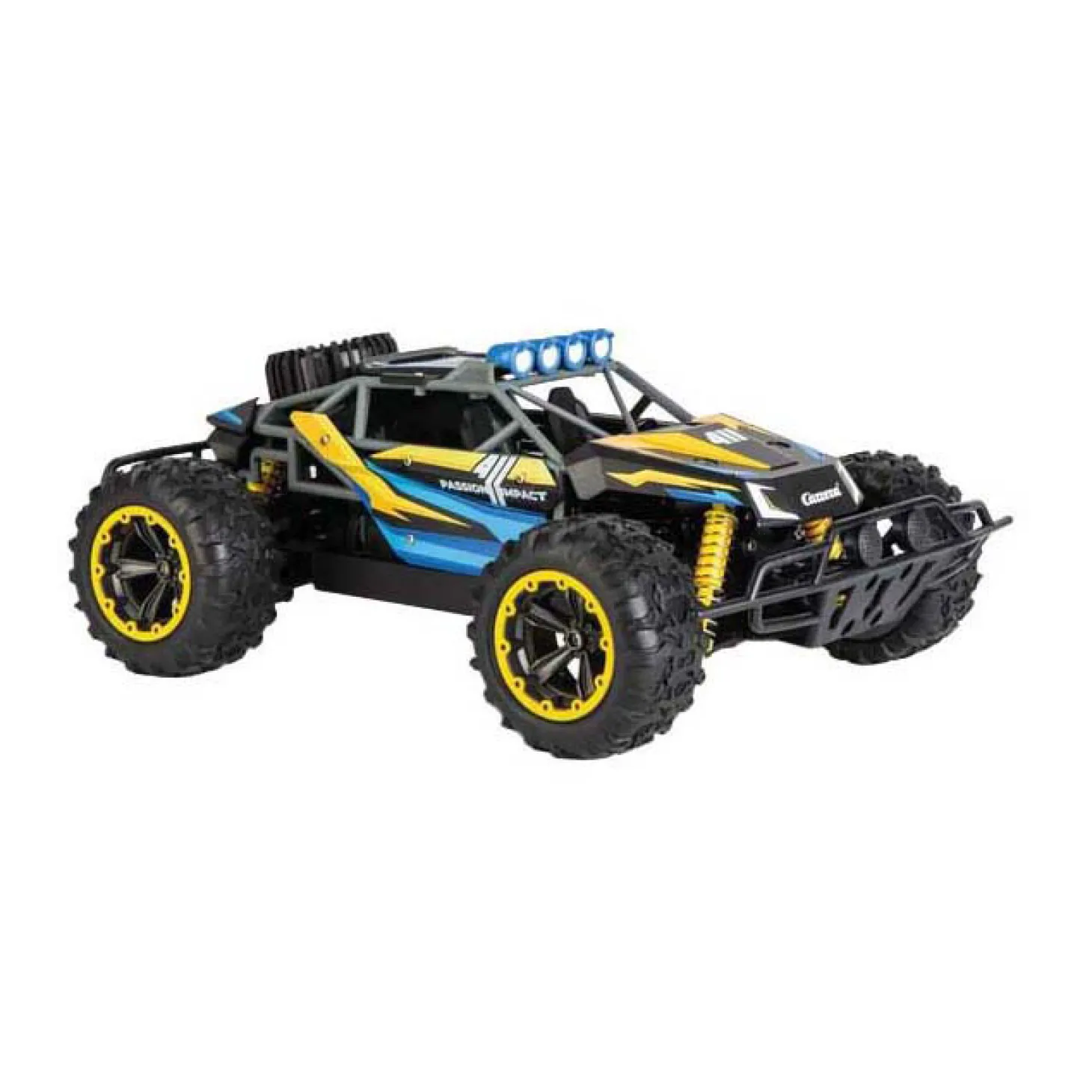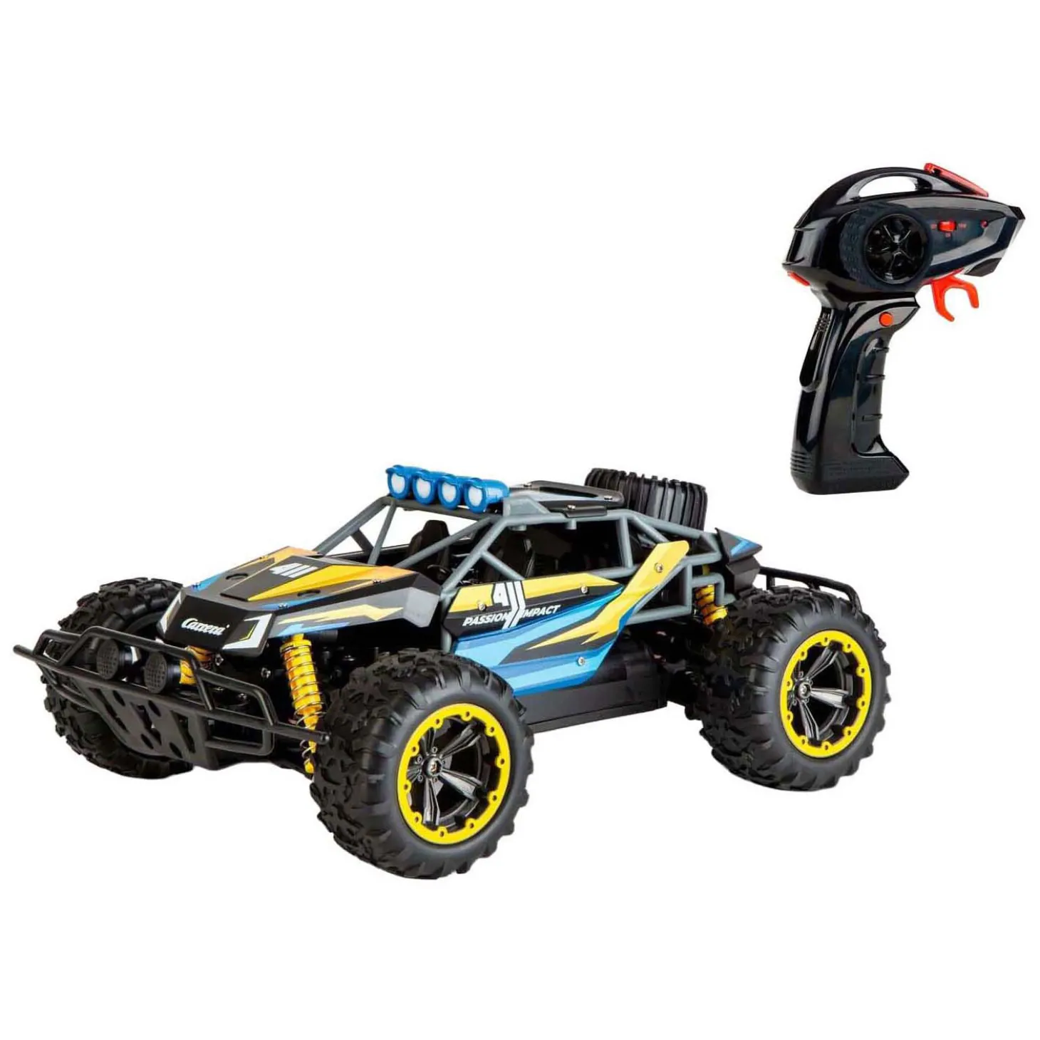 De Carrera RC Passion Impact 2.0 is een geweldige offroad auto voor ruiger terrein! AWD zorgt ervoor dat hij zich op elke ondergrond thuis voelt. Digitale proportionele bedieningselementen garanderen dit RC-voertuig geweldige rijeigenschappen. Met een lengte van 29 cm/11,4 inch trekt deze cool ogende zwart-witte buggy met gele accenten de aandacht met felrode ophanging, een rolkooi, decoratieve koplampen en een robuust chassis om zowel bestuurders als toeschouwers in vervoering te brengen. Bestuurders van 6 jaar en ouder kunnen over het ruigs te terrein schieten met snelheden tot 20 km/u – 12,4 mph gedurende maximaal 20 minuten, voordat de ingebouwde LiFePo4-batterij van de buggy een welverdiende oplaadpauze van 80 minuten neemt.