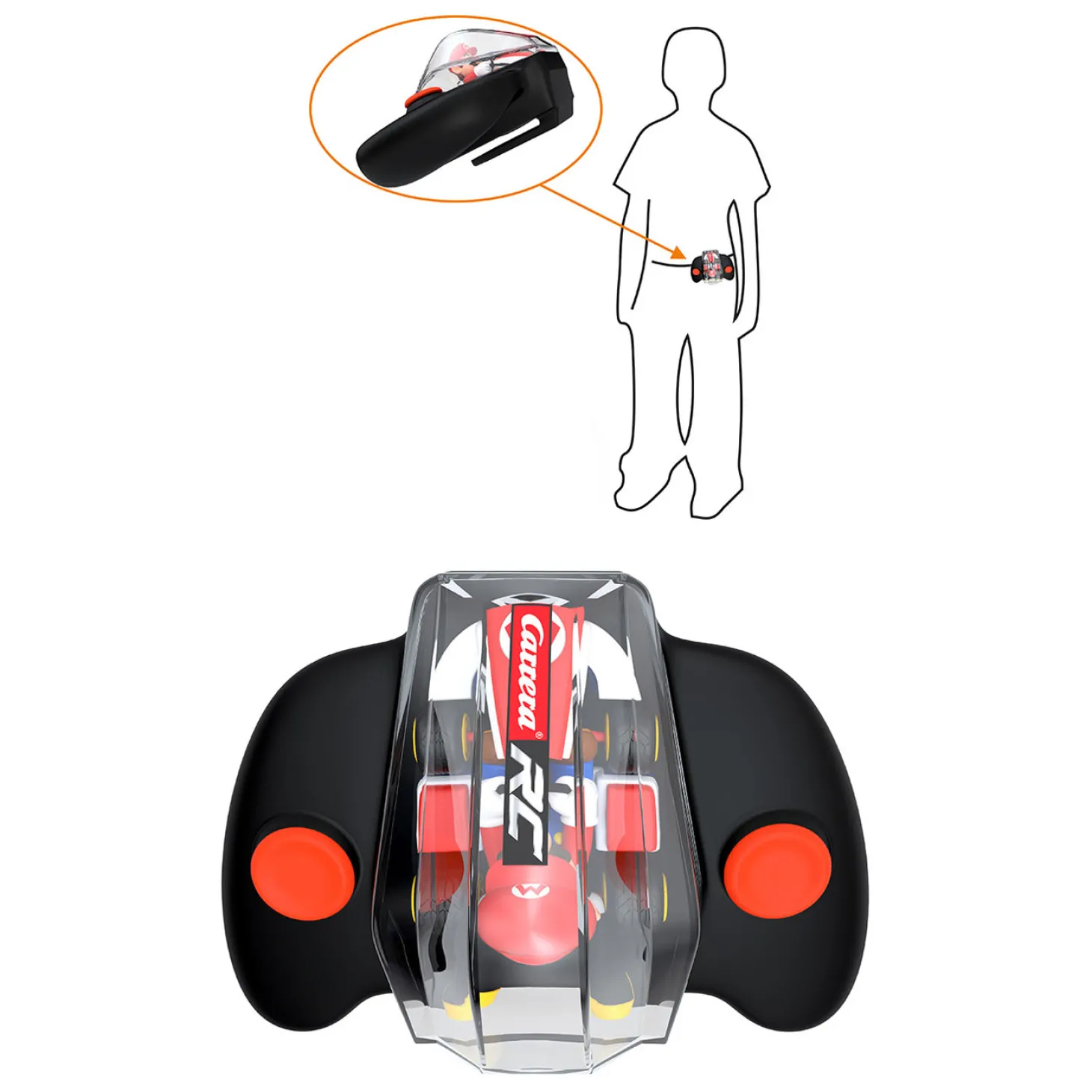 De auto is oplaadbaar én op te bergen in de controller. Met 30 minuten opladen, race je tot 7 minuten met Mario. Race alleen of natuurlijk tegen de andere Nintendo-raceauto’s van Carrera, zoals Yoshi, Peach of Mario. Wel oppassen voor bananenschillen en blauwe schilden hè?