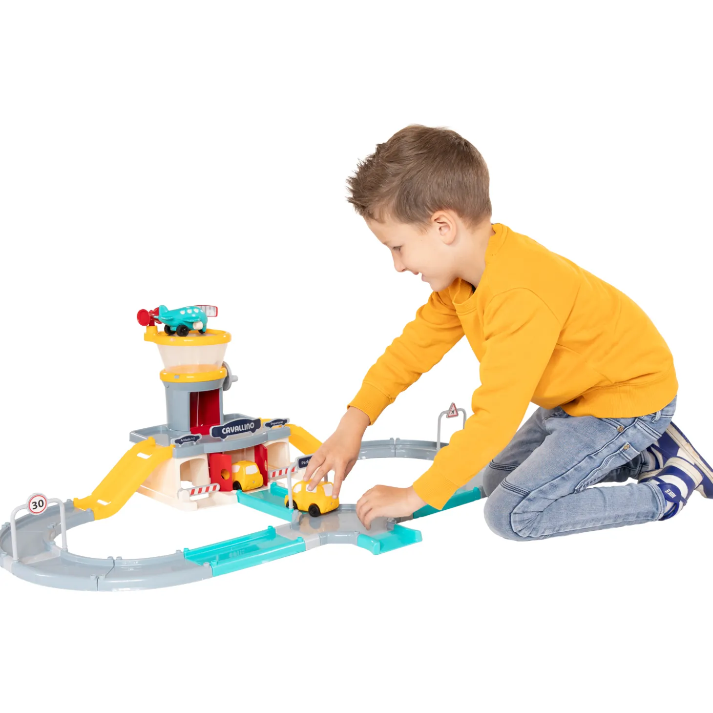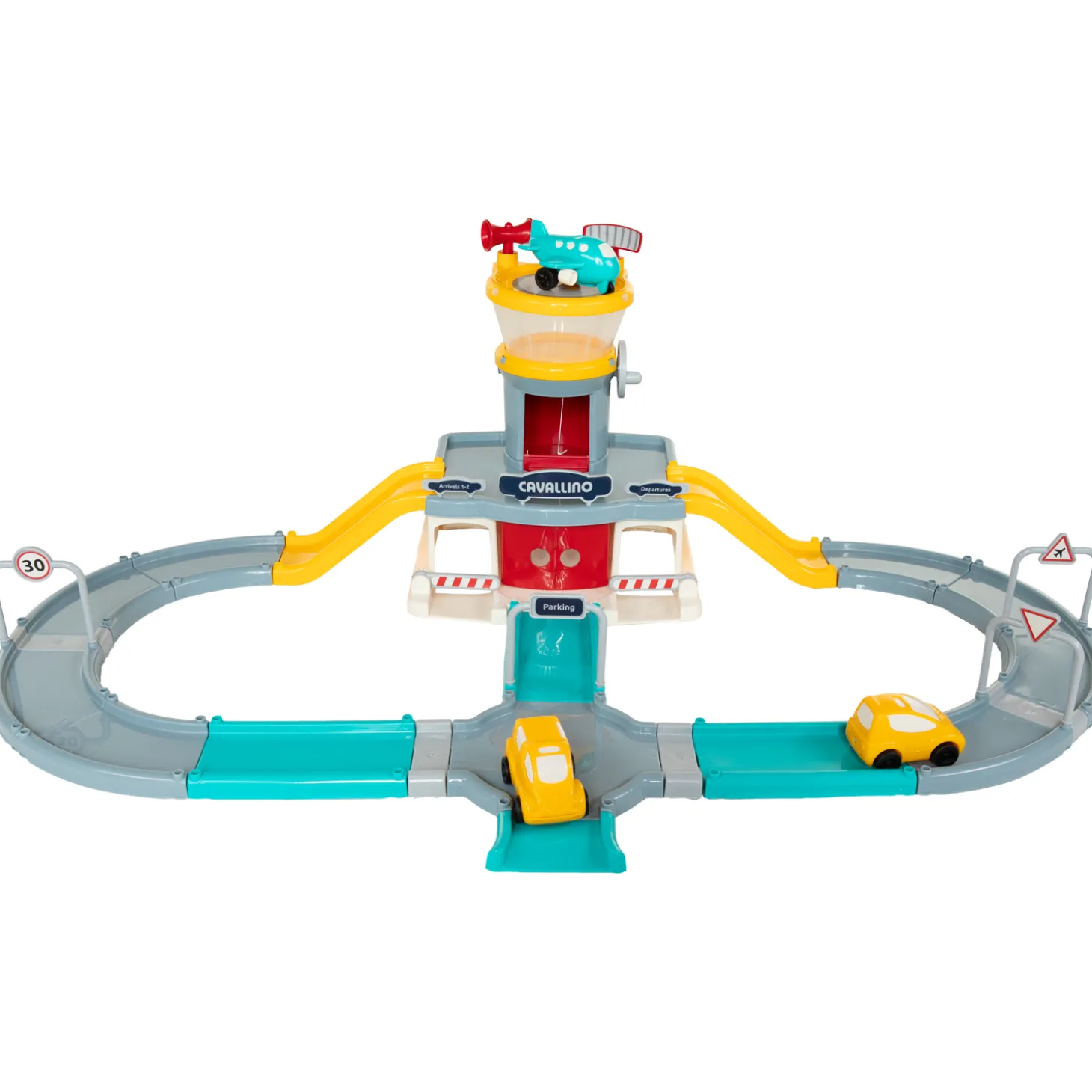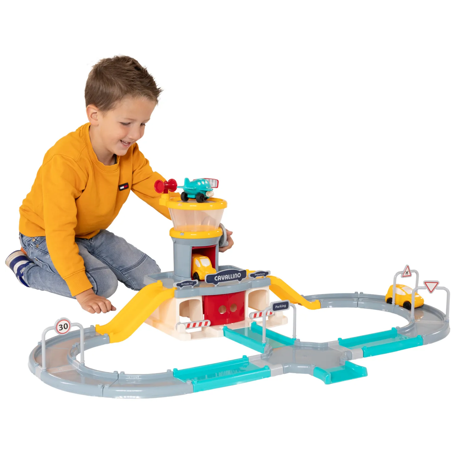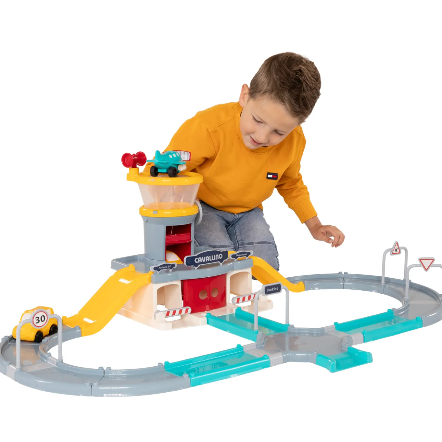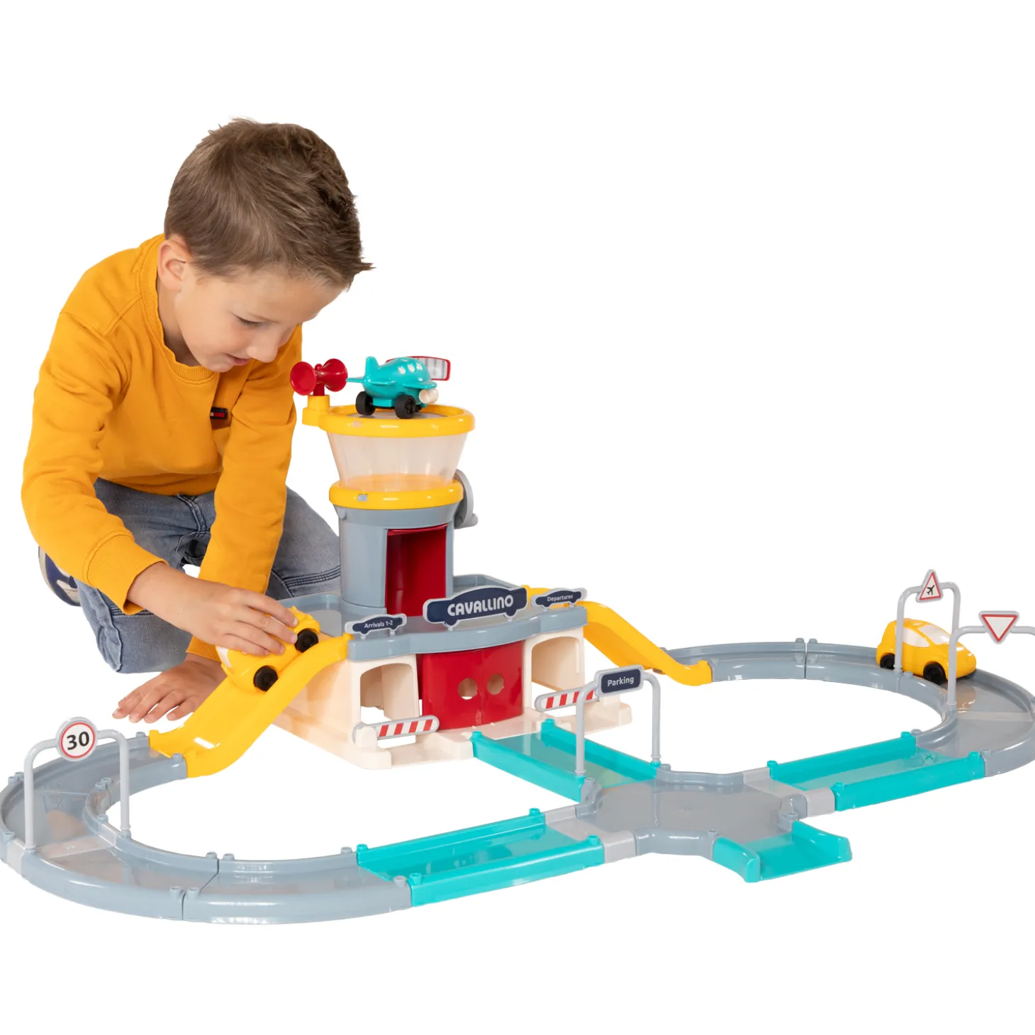 •Parkeergarage speelset met luchthaven, vertrekhal, verschillende wegdelen en werkende lift