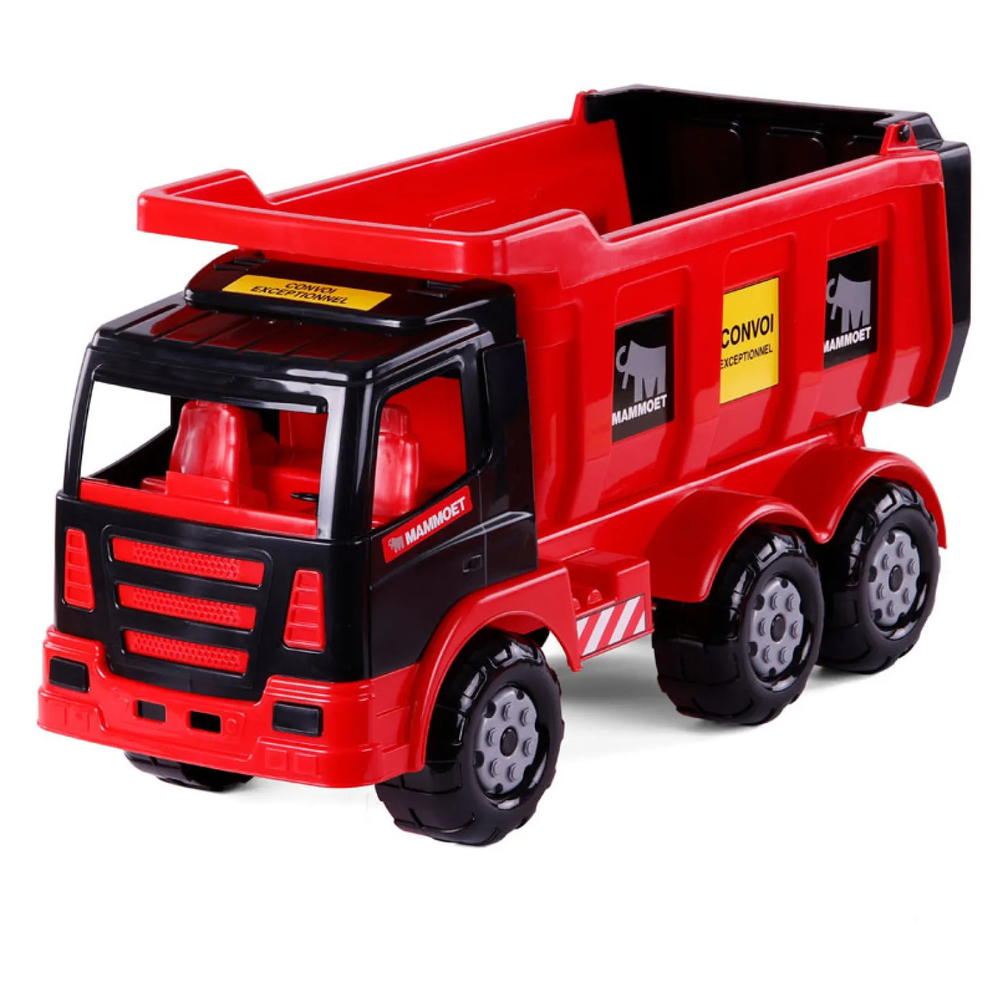 Cavallino Mammoet kiepvrachtwagen met kiepfunctie en een extra kieplade om je lading te lossen. De vrachtwagen is gemaakt van kunststof en heeft een lengte van 67 centimeter.