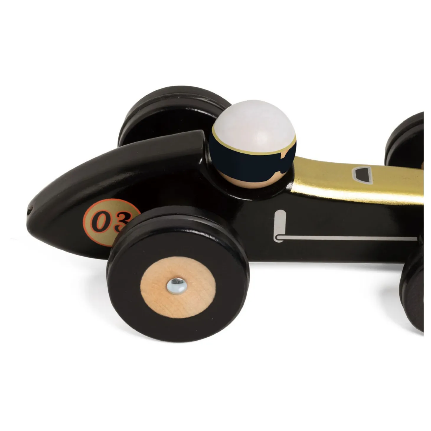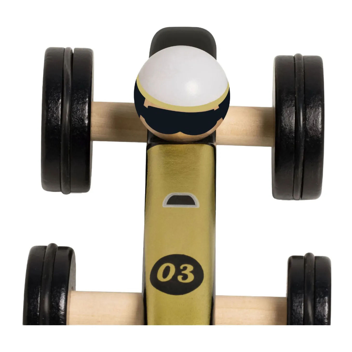 Deze prachtige zwarte raceauto is geïnspireerd op de beroemdste auto’s uit de geschiedenis van de autosport en met hun stuursysteem kunt u de sensaties van leuk rijden herontdekken. De kleintjes kunnen hun fijne motoriek en hand-oogcoördinatie oefenen. Deze auto’s zijn handgemaakt van hout en zijn ook geweldige verzamelobjecten voor oudere kinderen!