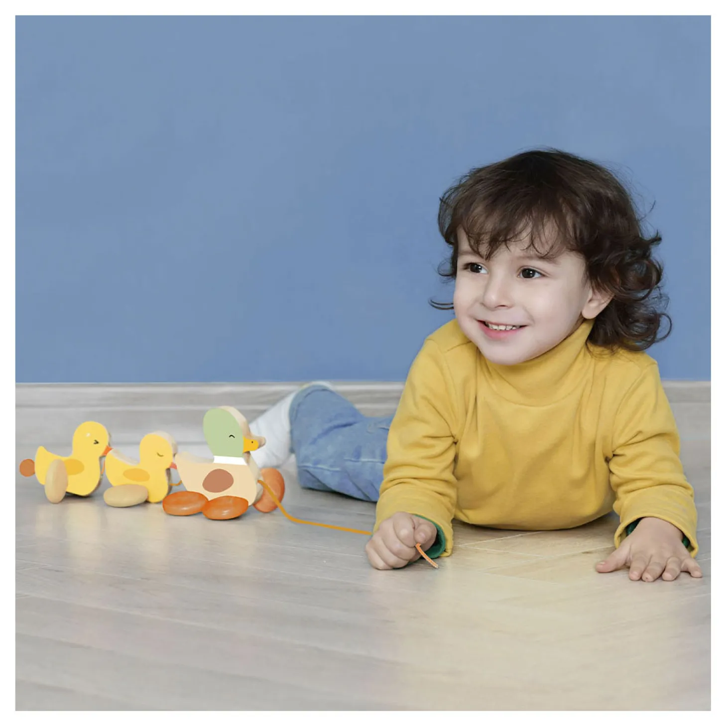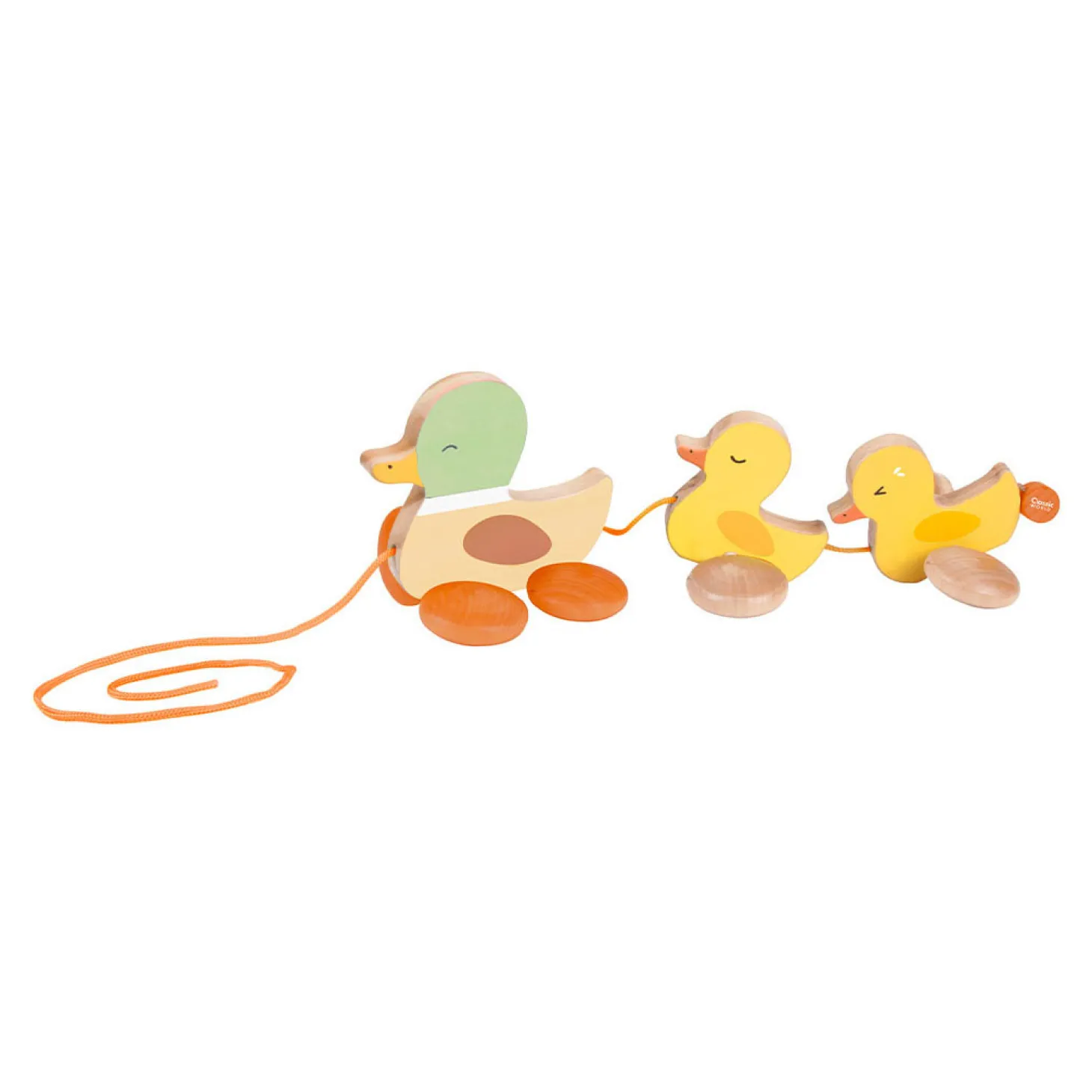 Ga op stap en neem deze lieve eendjes mee! Vader eend wil graag met zijn kuikens met je mee op avontuur. Houdt het koortje goed vast en trek ze achter je aan. Deze houten eendjes hebben vrolijke kleuren en lieve gezichtjes. Ze zijn geschikt voor kinderen vanaf 12 maanden.