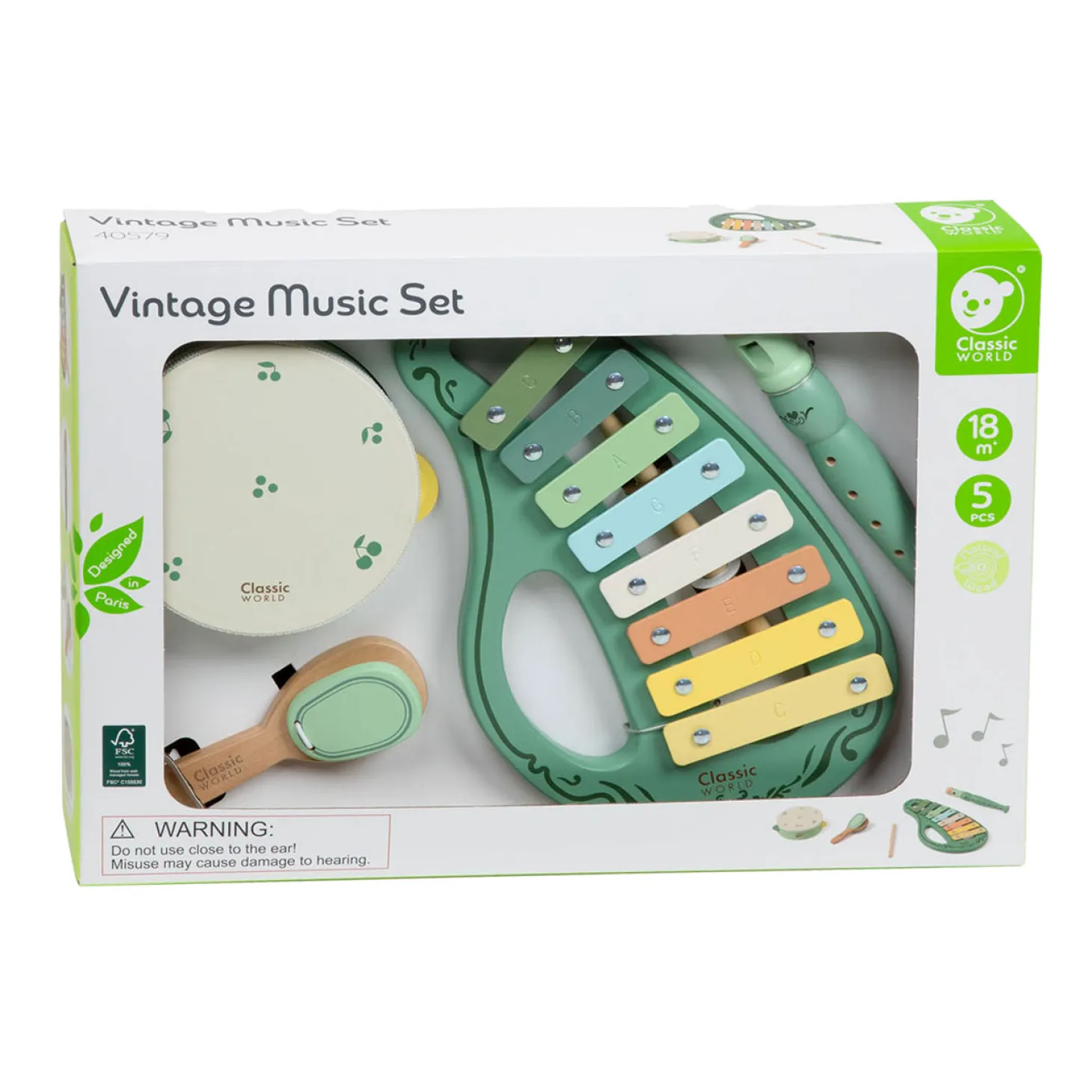 Classic World Houten Vintage Muziekinstrumenten Set, 5dlg.
