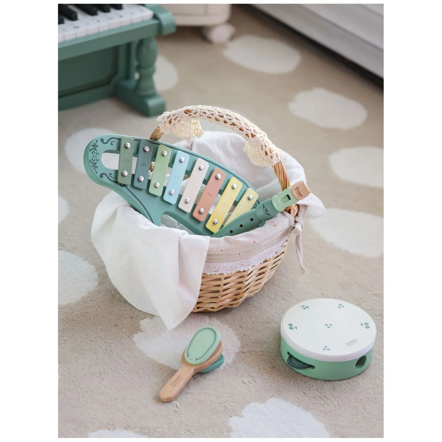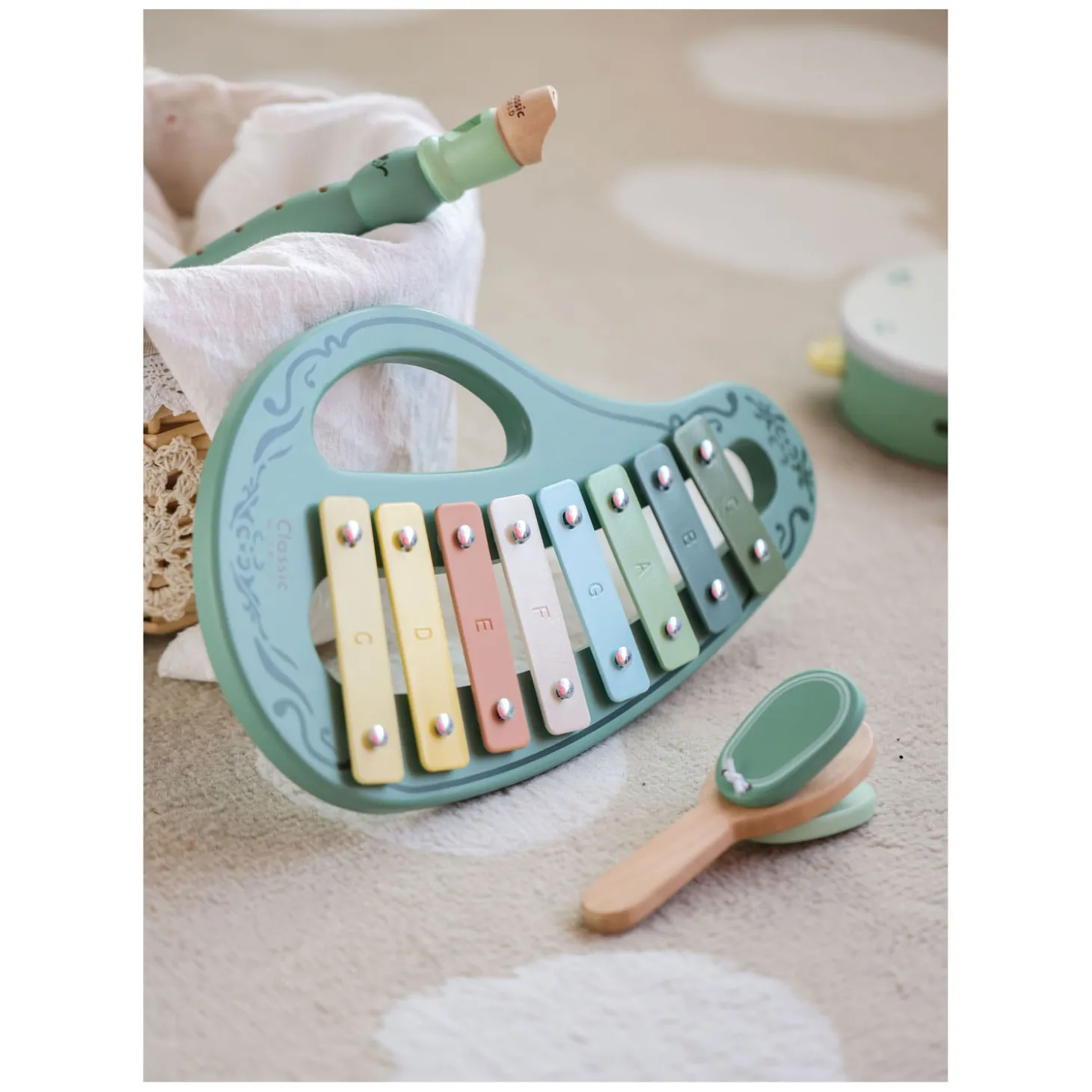 Klassieke retrokleuren passen bij elkaar om een betoverend klassiek muziekpaleis te creëren. Deze retroserie muziekcombinatie omvat verschillende instrumenten zoals percussie, klankbord, fluit en drum. Kinderen kunnen genieten van verschillende textuur van geluid en hun eigen muziekmelodieën maken.