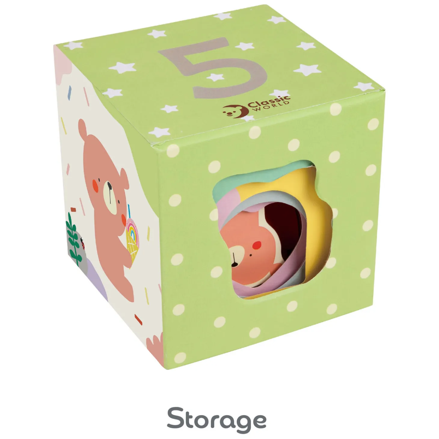 De blokken stimuleren de motorische vaardigheden, hand-oogcoördinatie en het probleemoplossend vermogen. De blokken zijn geschikt voor kinderen vanaf 18 maanden.