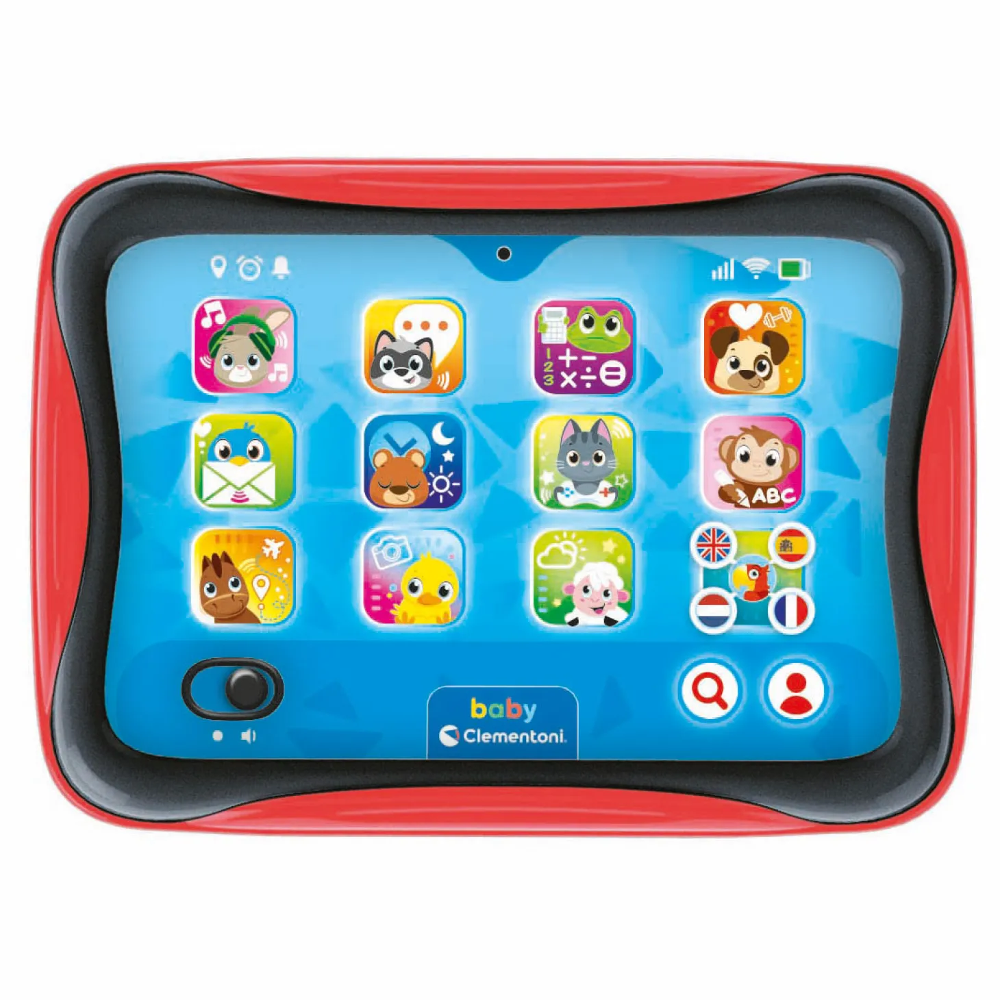Een tablet met 12 touch-knoppen en een heleboel leuke afbeeldingen. Perfect om het imitatiespel te stimuleren en tegelijkertijd het kind uit de buurt van schermen te laten spelen. Cijfers, letters, muziek en woorden! Heel veel educatieve activiteiten om spelenderwijs te leren. De baby-tablet is geschikt voor kinderen vanaf 1 jaar. Ontdek de hele lijn imitatiespellen van Baby Clementoni!
