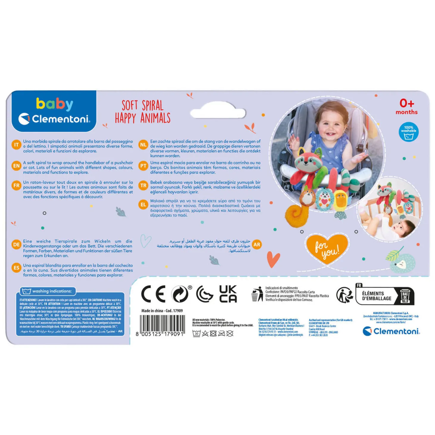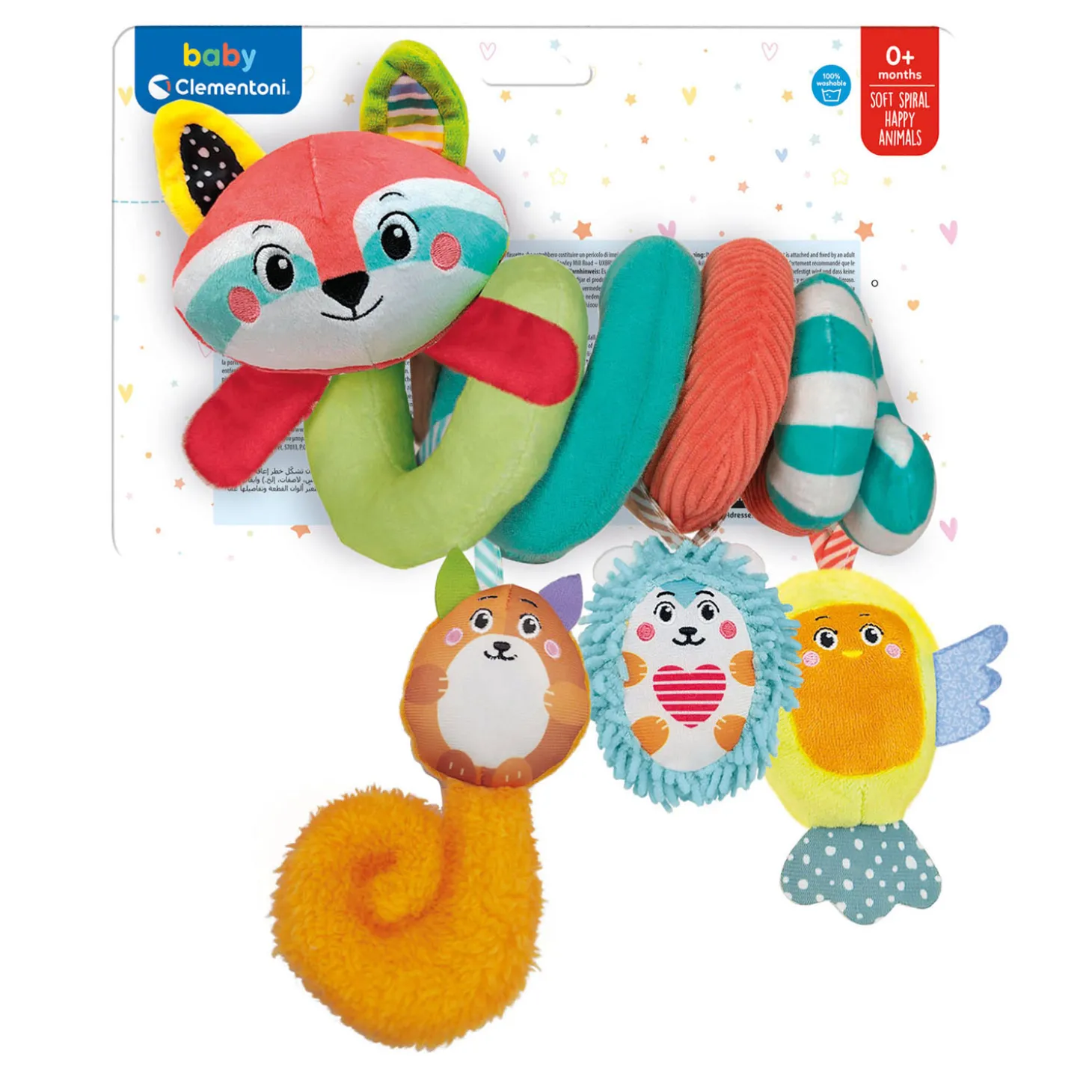 De schattige wasbeer en zijn lieve bosvrienden vormen een zachte kinderwagenspiraal om het kind te vermaken en te amuseren dankzij de verschillende materialen en de rammelaars in de hangers. De lieve eekhoorn heeft een zachte staart met ruiseffect, de egel en het vogeltje hebben binnenin een rammelaar. Stimuleert de handvaardigheid, visuele en auditieve waarneming. Spiraal om rondom de kinderwagen op te rollen, maar ook op het bedje of om altijd bij je te dragen! Een product geschikt voor de eerste maanden van de ontwikkeling van de baby.