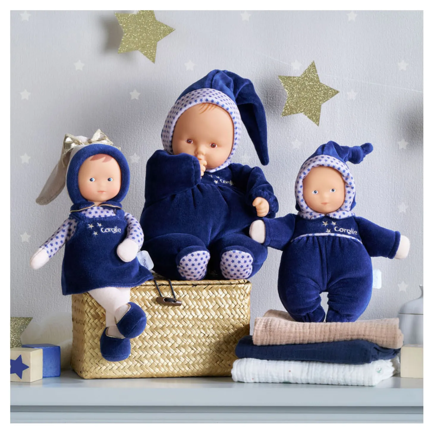 Babidoux Navy Blue Starry Dreams is 20 cm groot en licht van gewicht. De stof is ultra zacht, wat het perfect maakt voor jonge kinderen.