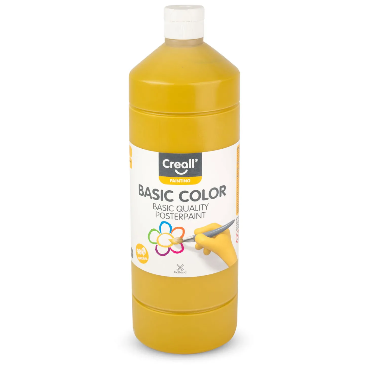 De 1 liter fles okerkleurige Creall Schoolverf is ideaal om te gebruiken voor klassen en andere grote groepen.