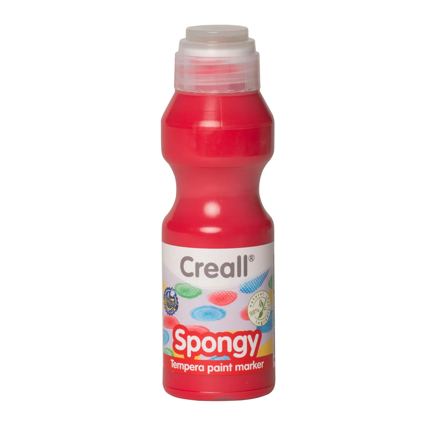 De rode Creall Spongy Verfstift van 70 milliliter wordt geleverd in een speciaal ergonomisch flesje voor goede grip.