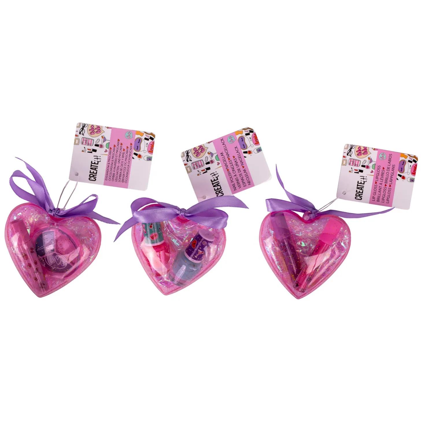 De make-uphartjes van Create It! zijn ook leuk als uitdeelcadeautje op bijvoorbeeld een kinderfeestje. Met het kunststof hartje als opbergdoos zijn de make-upjes ook makkelijk mee te nemen.