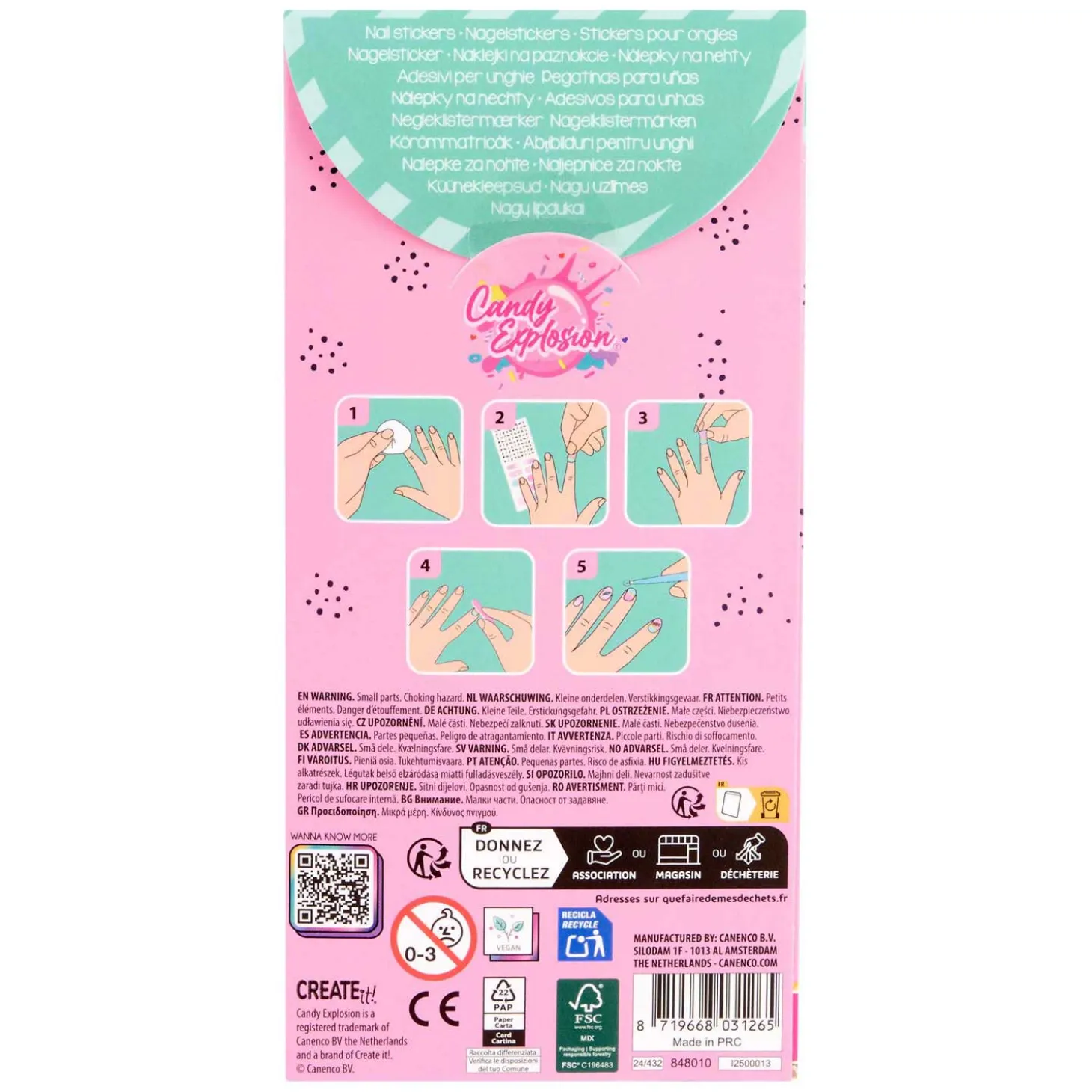 Met de Create It! Candy Explosion Nagelstickers Creatie Set geef je je nagels een speelse en vrolijke look in je eigen stijl. De set bevat verschillende ontwerpen in pastelkleuren, met snoepjes, swirl-patronen en andere leuke figuurtjes. Kinderen vanaf 6 jaar kunnen eindeloos combineren en hun nagels versieren zoals zij dat willen. Ideaal voor een feestje, verkleedmiddag of gewoon lekker thuis creatief bezig zijn!