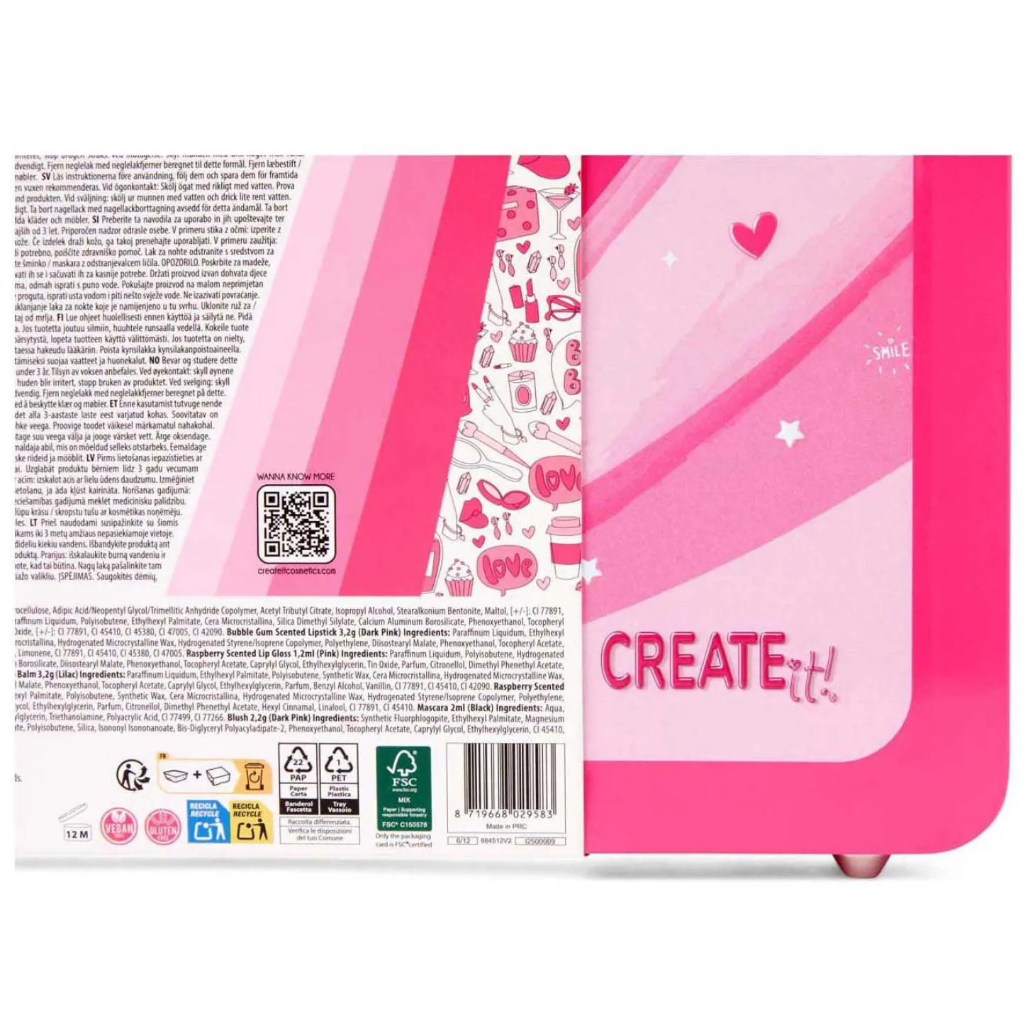 •Bevat o.a. lipgloss, nagellak, oogschaduw, mascara, blush en accessoires
