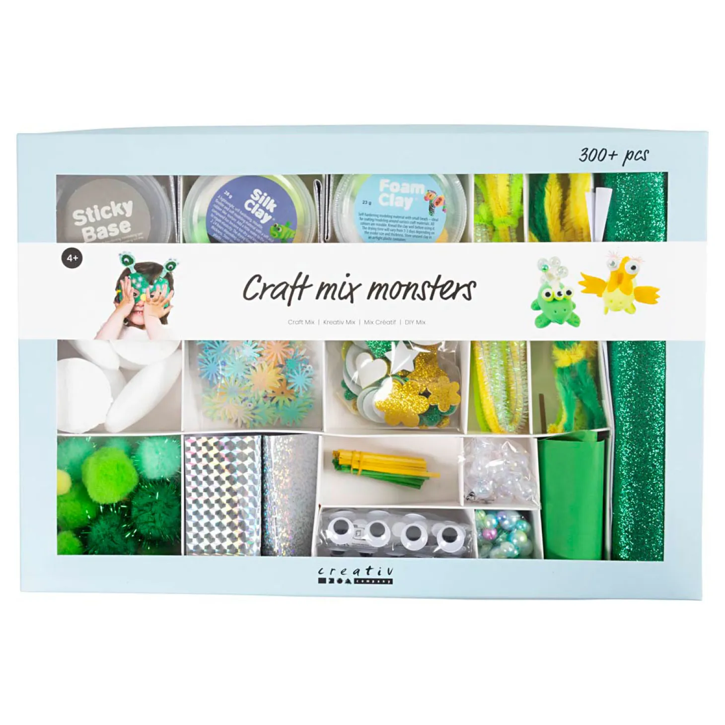 Een doos met creatief materiaal dat exploratie, spel en leren aanmoedigt en die tot de verbeelding, de zintuigen en creativiteit prikkelt. Een beetje creatieve inspiratie zit in de doos.Gebruik Sticky Base zowel als lijm en als boetseerklei. Combineer Silk Clay en Foam Clay met de reeks verschillende materialen om een wereld van fantasierijke figuren te creëren. Kortom: gebruik uw fantasie en ontdek de creatieve mogelijkheden..Inhoud: EVA-schuim, EVA-glitterschuim, pijpenragers, pijpenragers met glitters, Foam Clay®, Silk Clay®, Sticky Base, EVA-schuimvormen met glitters, pailletten, polystyreen ballen, Styropor, kralen, houten stokjes, wiebelogen, mal, holografisch papier, pompons
