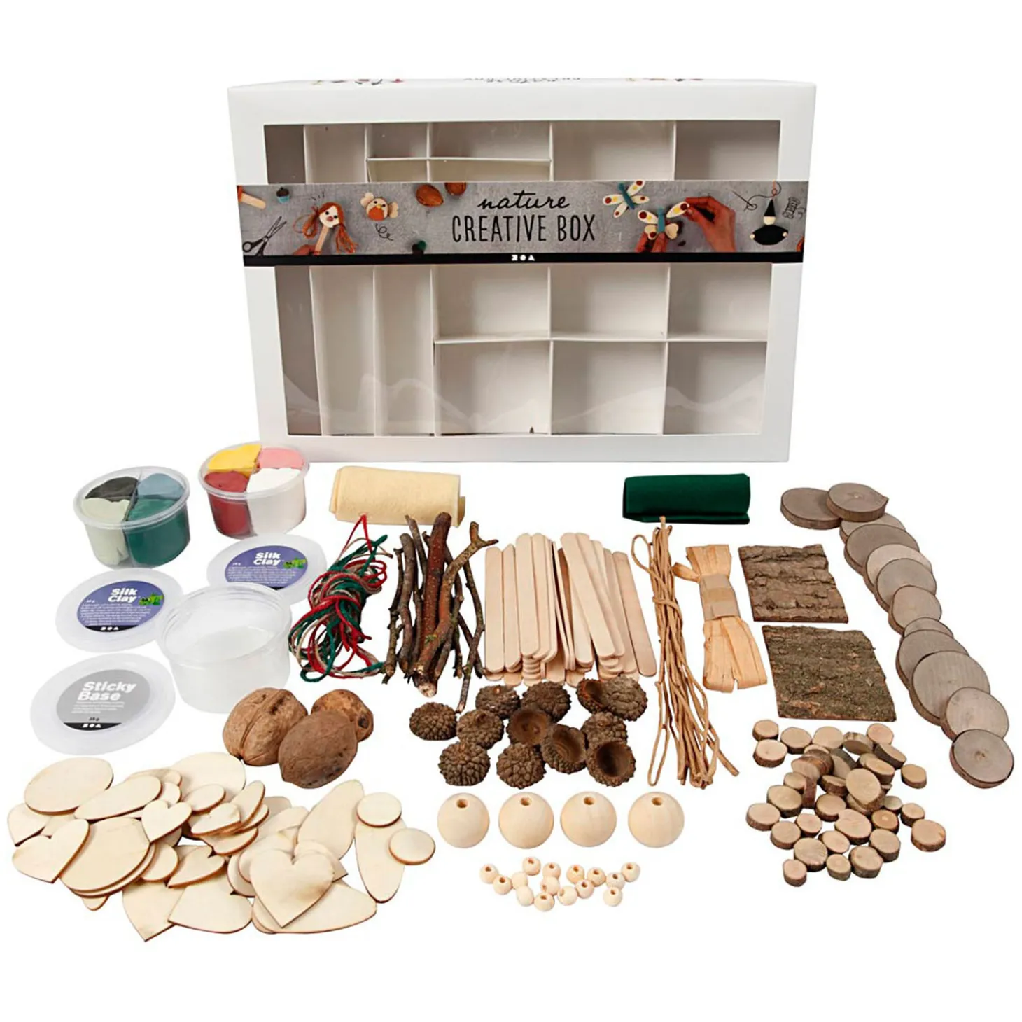 Met deze complete doos met knutselmateriaal maak je een wereld van fantasierijke figuren. De creatieve materialen nodigen exploratie, spel en leren aan en prikkelen de verbeelding, de zintuigen en de creativiteit. Om te helpen en de creativiteit te starten staat er creatieve inspiratie op de achterkant van de box geprint..