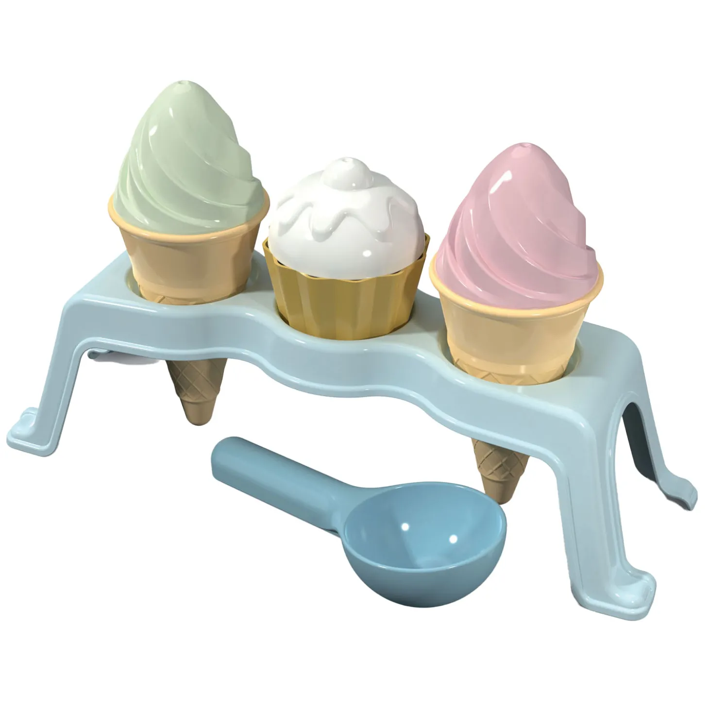 Speelset van hoogwaardig kunststof, bestaande uit 2 ijsjes en 1 cupcake op een standaard. Inclusief ijslepel. Geschikt vanaf 18 maanden.