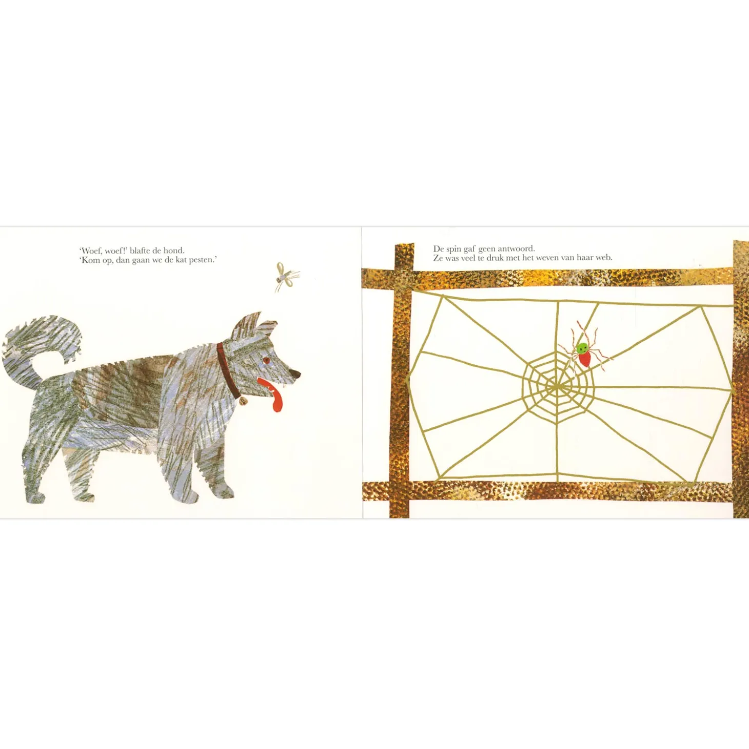 Op een mooie morgen werd een spin door een zacht briesje door de lucht gedragen. Een ragfijne draad slierde achter de spin aan. Toen landde ze op een hek, vlak bij het erf van een boerderij en begon een web te maken. Een web dat je echt kunt voelen als je met je vingers over de bladzijden gaat.