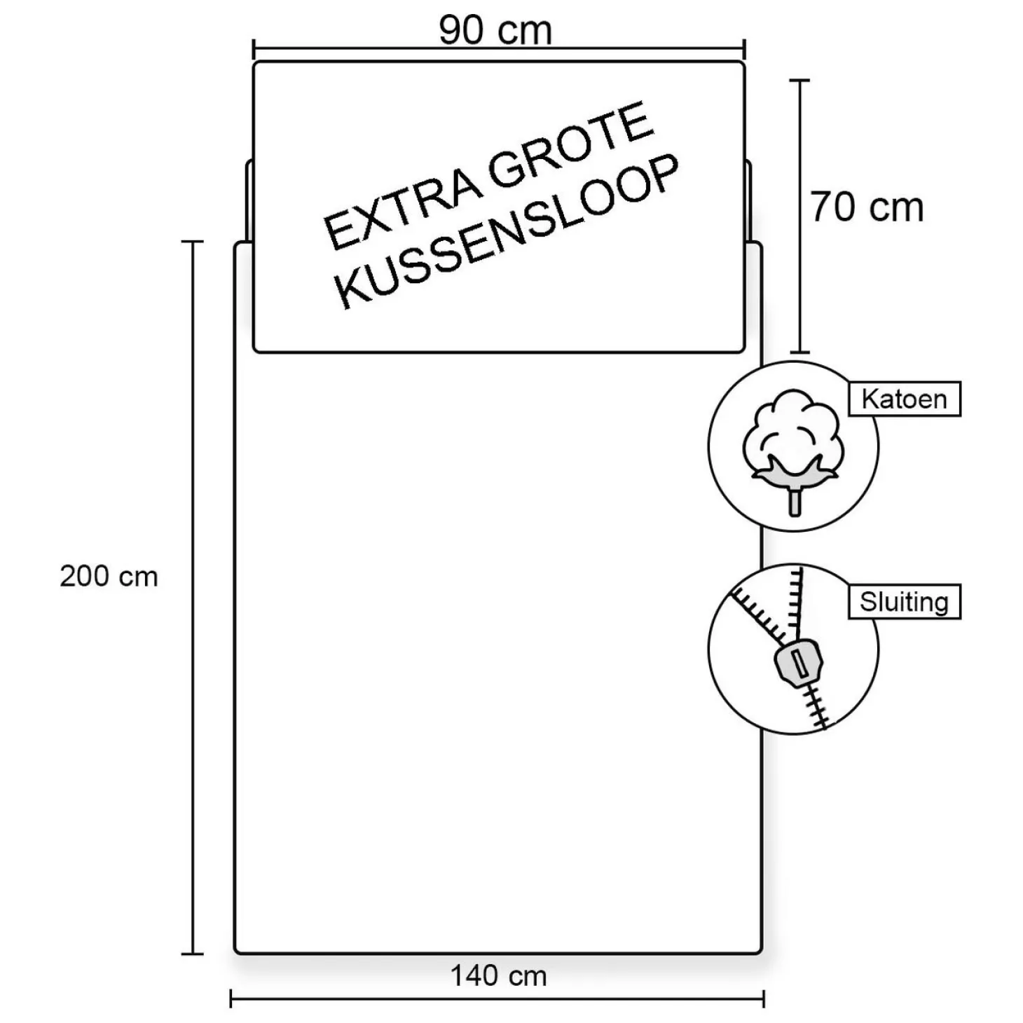 •140 x 200 centimeter groot; kussenhoes 90 x 70 centimeter