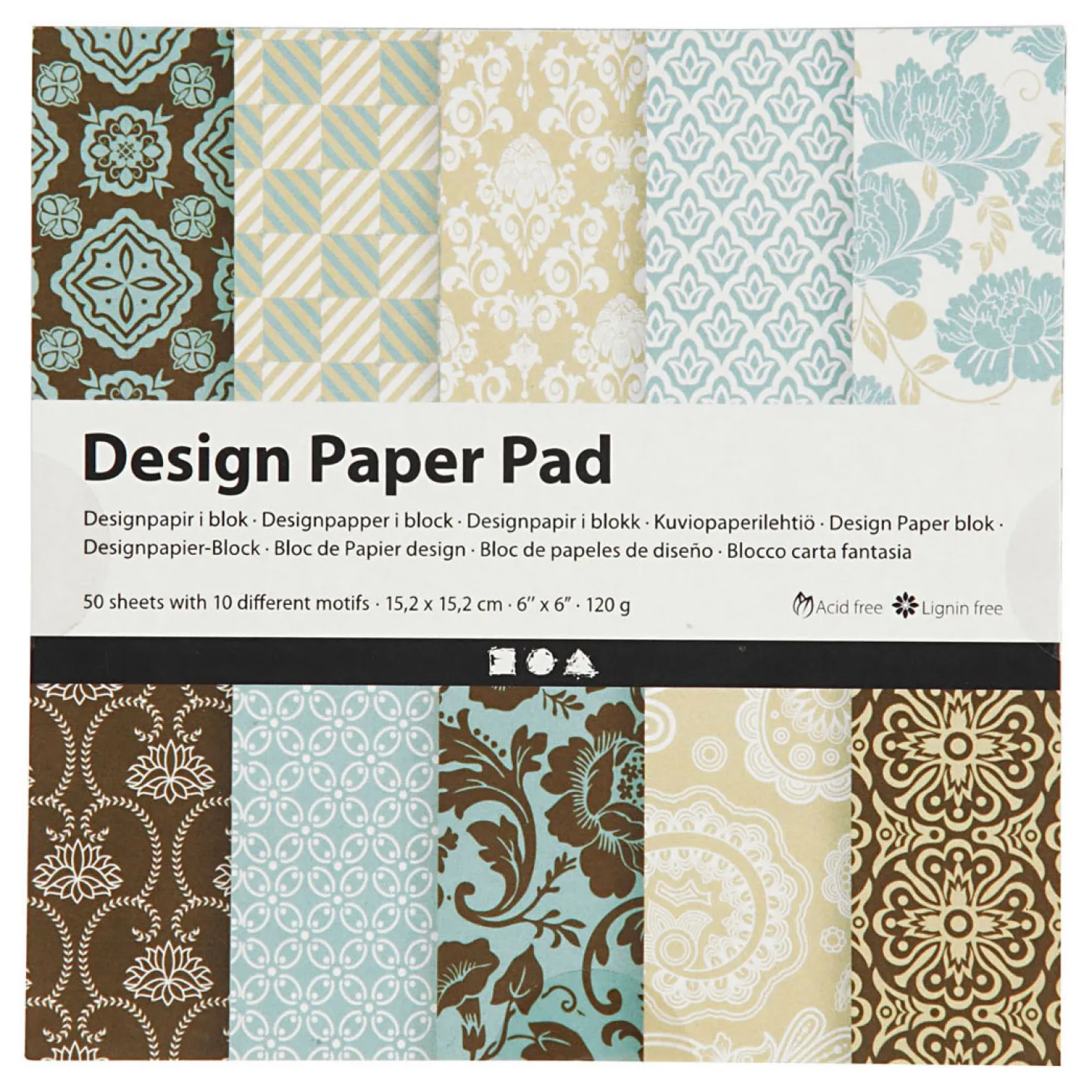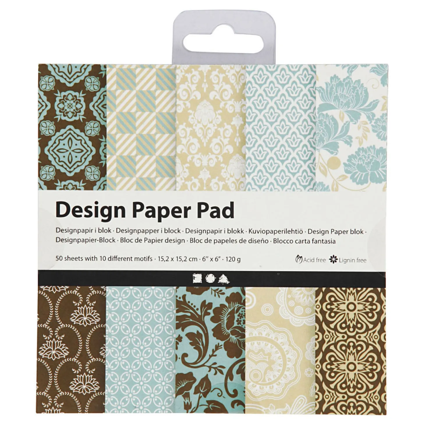 Design Papierblok Lichtblauw/Bruin, 50 Vellen