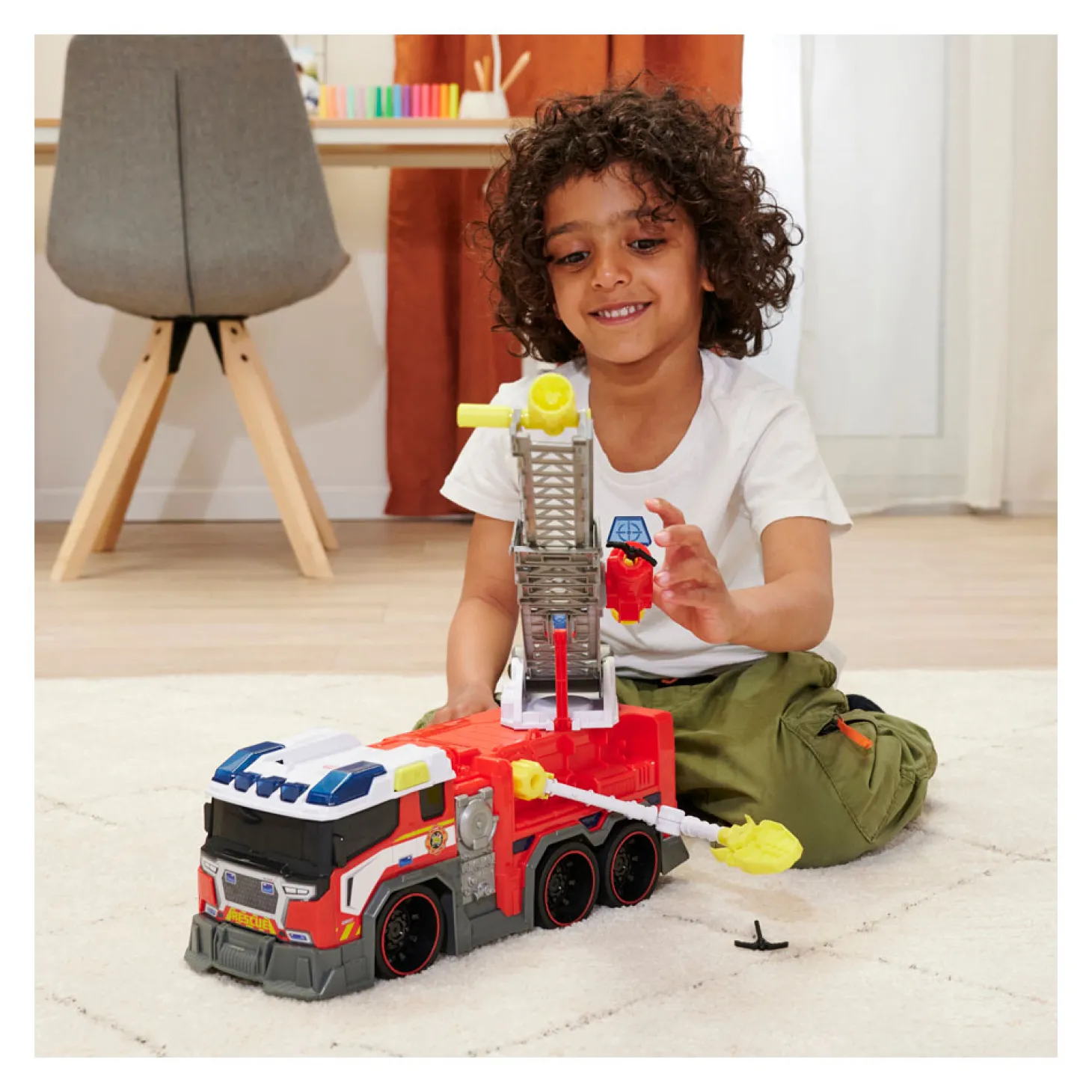 Met zwaailichten en een realistische sirene is deze brandweerwagen van 37,5 x 13,5 x 18,5 cm volledig uitgerust voor elke reddingsmissie: