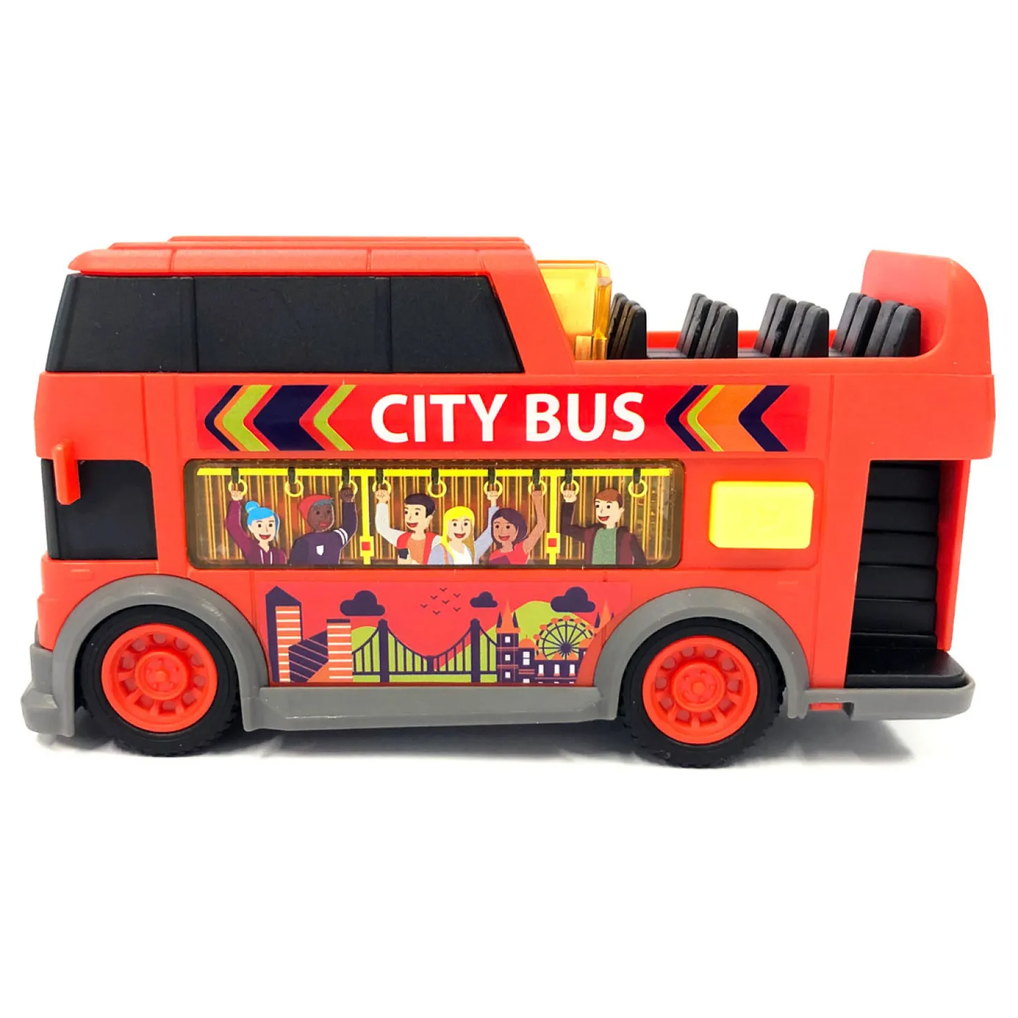 Doe alsof je buschauffeur bent en ga op spannende avonturen! Kleine figuren kunnen op het bovendek worden geplaatst en op een tour worden genomen. Waar
