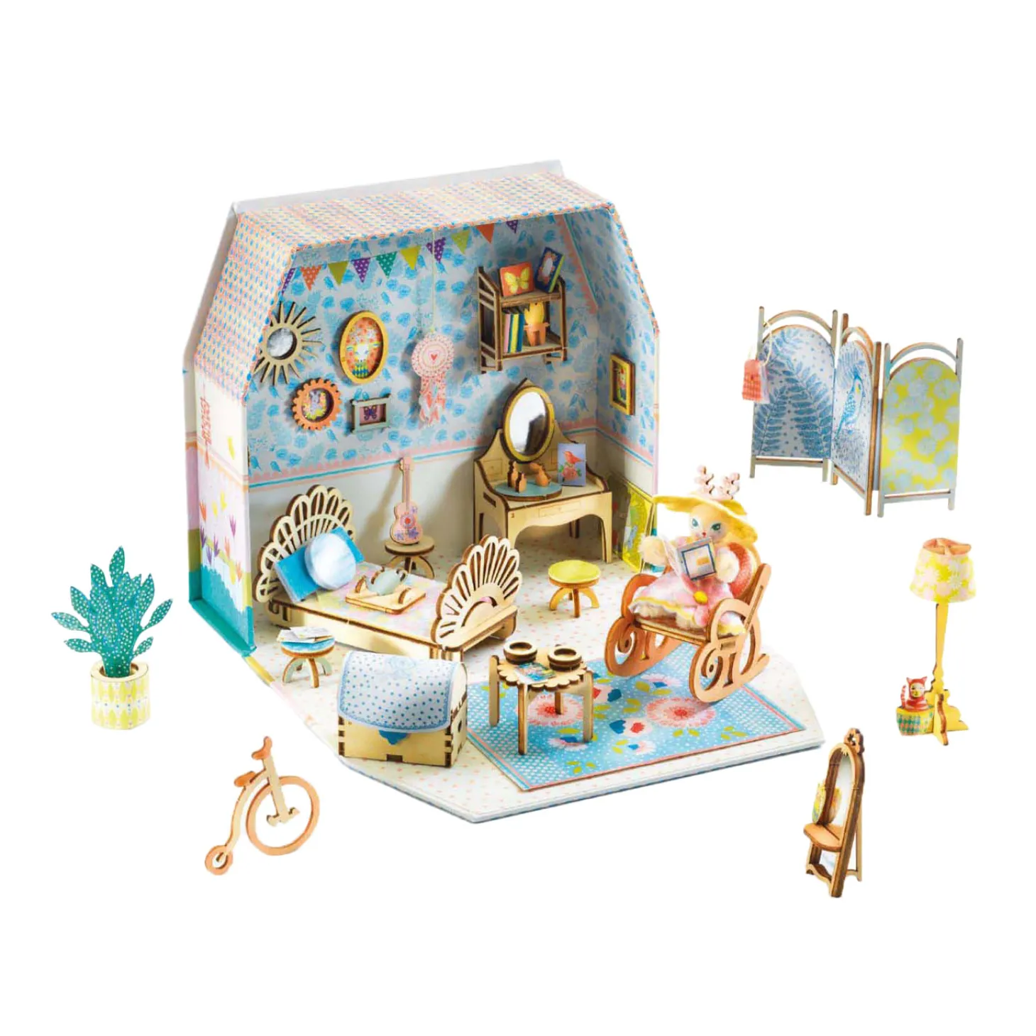 Is het huisje van Alba klaar? Dan kan het dichtgevouwen worden tot een echte schatkist waarin Alba en al haar mooie spulletjes en meubels veilig opgeborgen blijven. Deze rustgevende en fantasierijke activiteit stimuleert concentratie, logisch denken en precisie – en biedt alle ruimte voor creativiteit en ontspanning.