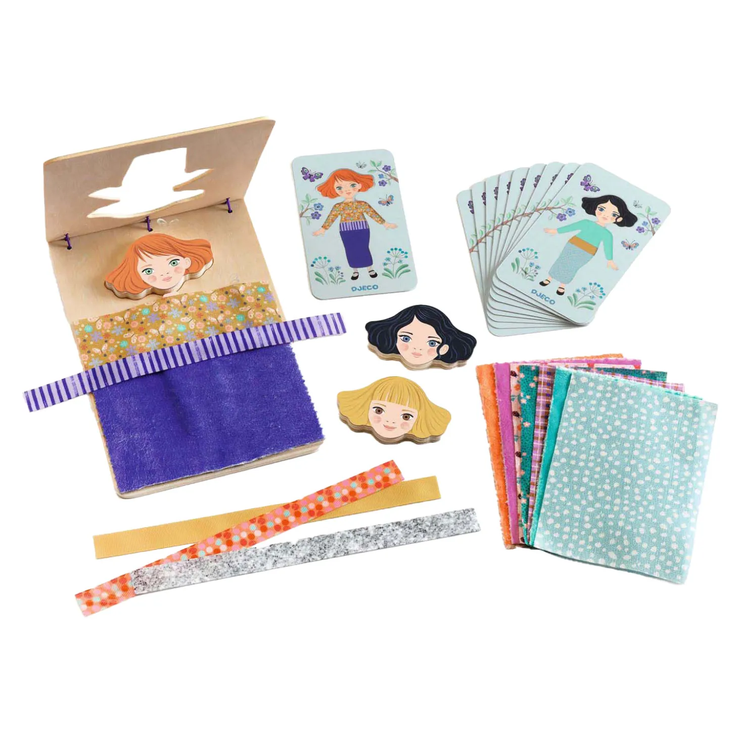Kinderen kunnen met dit fascinerende spel meisjeskleding namaken met behulp van mooie bedrukte stoffen en gekleurde lintjes. Met 10 modellen om na te maken of te personaliseren is het een leuke en leerzame ervaring die de verbeelding stimuleert!