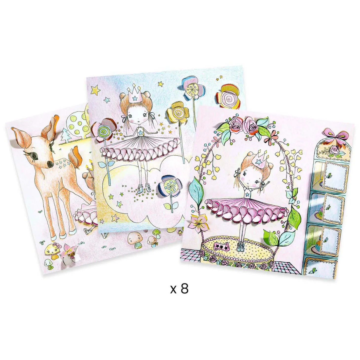 Inhoud: 8 dubbele kaarten (4 kaarten x2)