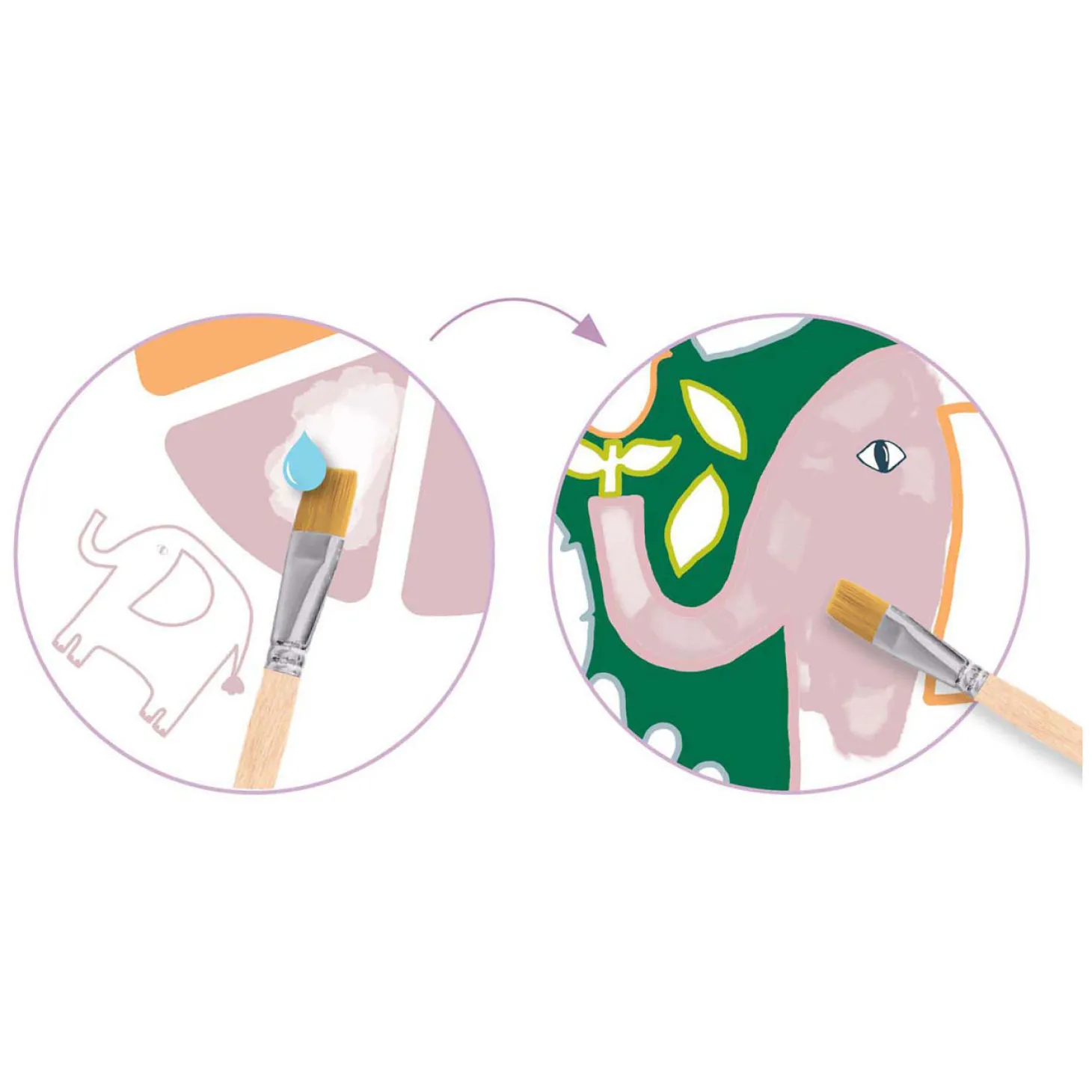Kleine kunstenaars ontdekken schilderen op een leuke en leeftijdsgerichte manier. Dankzij de paletten die direct op de vellen zijn afgedrukt, kunnen ze ‘net als volwassenen’ schilderen, zonder dat ze daarvoor omvangrijk en vuilmakend materiaal voor nodig hebben. Alles is ontworpen om een leuke, praktische en bevredigende ervaring te bieden!